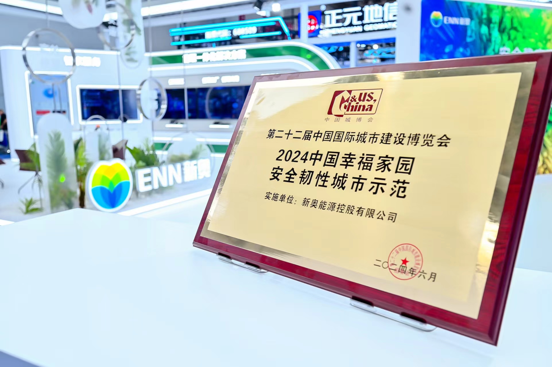 鉴于新奥能源在建设生态宜居城市、韧性城市、数字住建、完整社区建设、产学研融合发展等方面取得的系列成果,大会组委会授予新奥能源荣获 “2024中国幸福家园 安全韧性城市示范实施单位”荣誉。