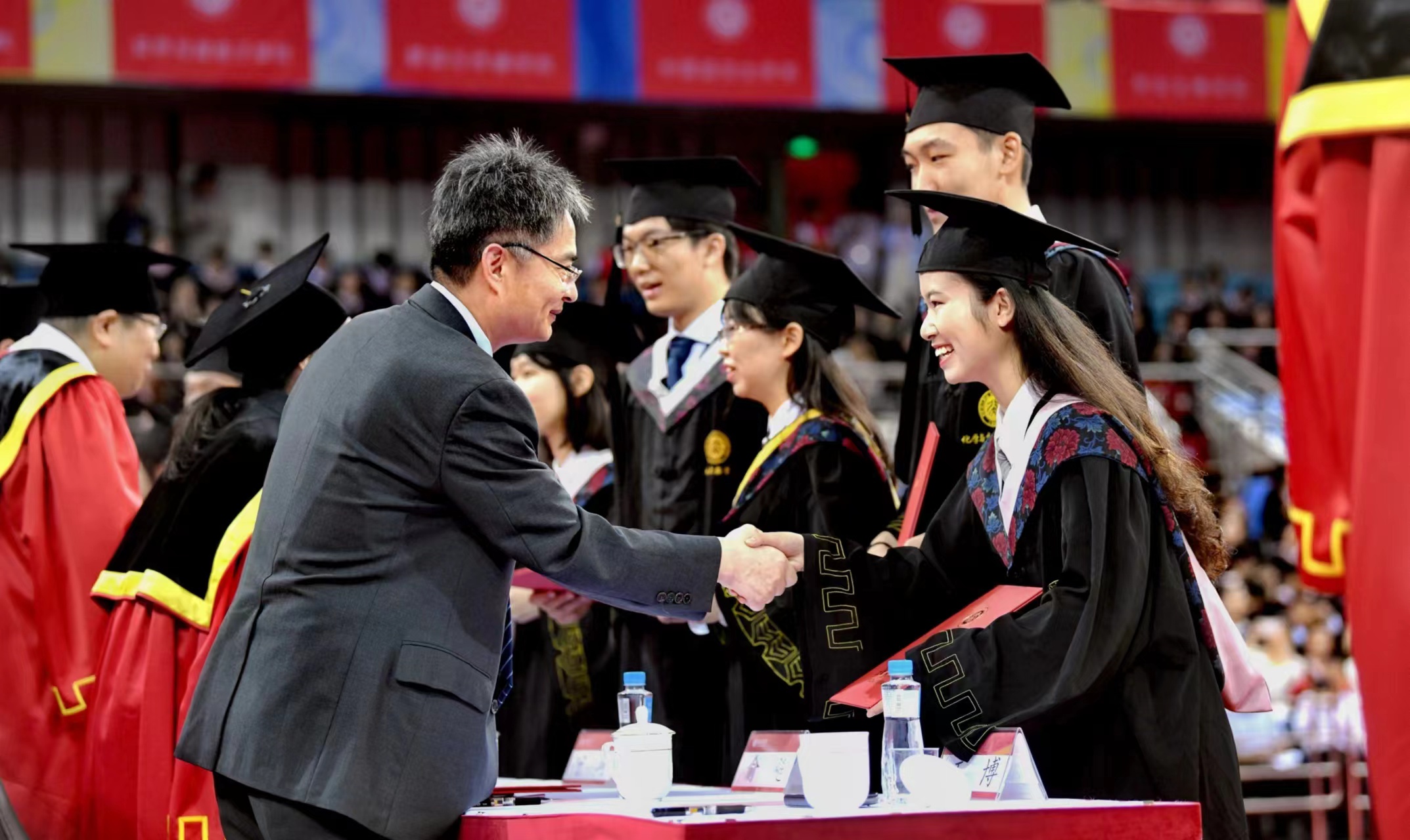 第二是跨界融通,拓展前行的路径。龚旗煌提到,当今世界新一轮科技革命和产业变革方兴未艾,人类社会面临的许多问题高度复杂。“大家要走在时代的前列,引领时代的发展,具有突破单一视角、强化跨界的视野和能力,这就是北大给予你们的宝贵财富。” 他希望大家都用好在北大培养的跨界思维,带着科学精神和文化情怀,以多元立体的视角审视时代课题,勇于提出自己的新见解、新方案。