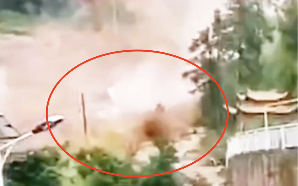当地突发山洪,村民的房屋瞬间被冲垮。网络公开视频截图