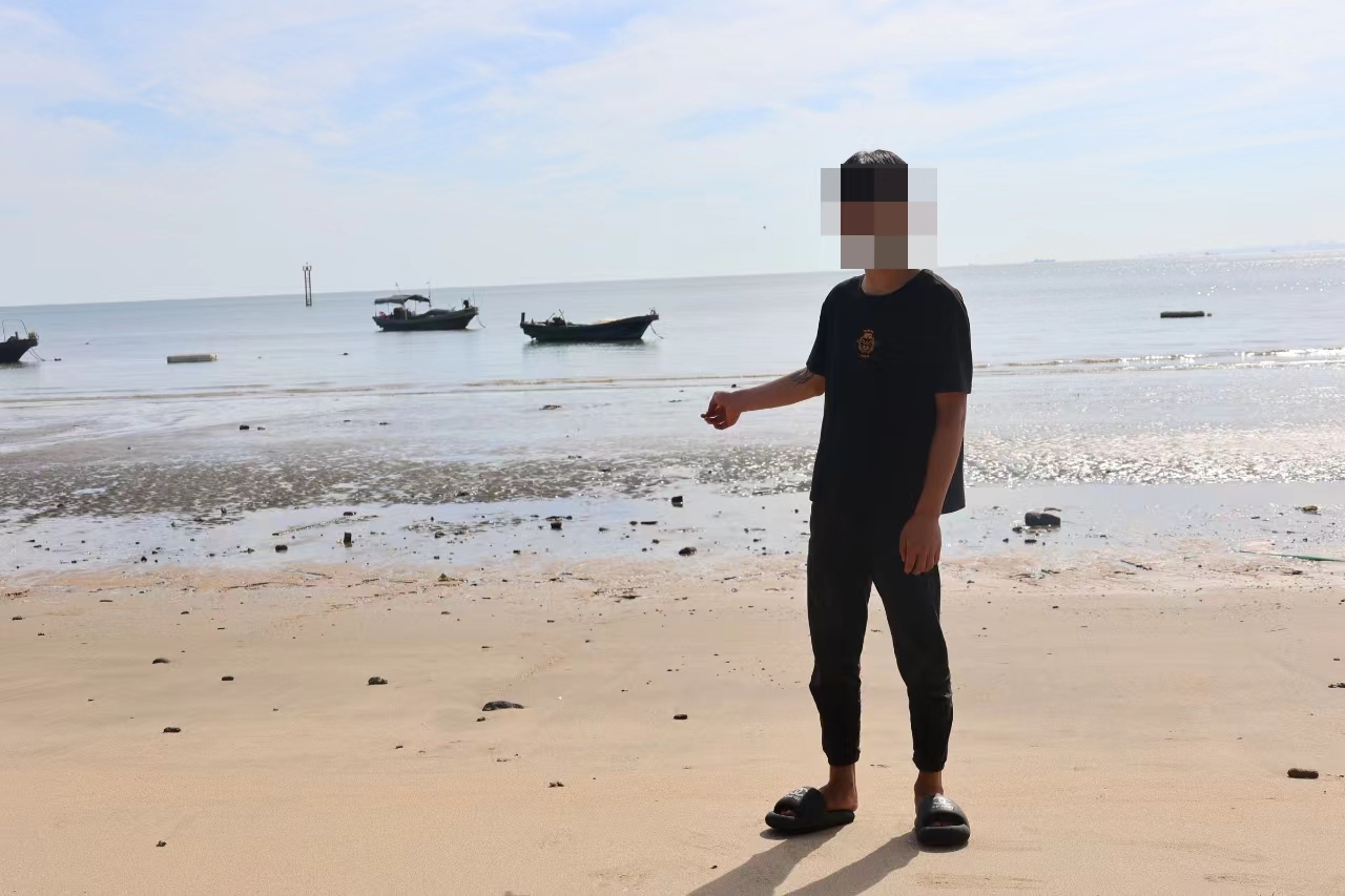 嫌疑人指认盗窃渔船蓄电池的地点。 图源:澄迈警方