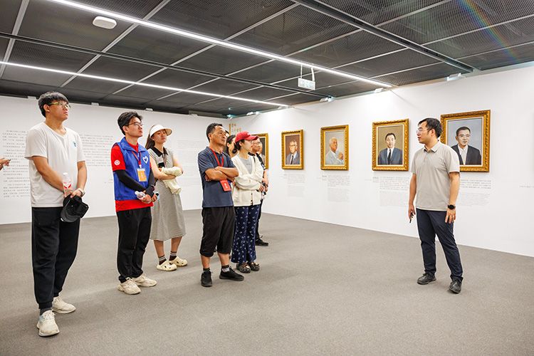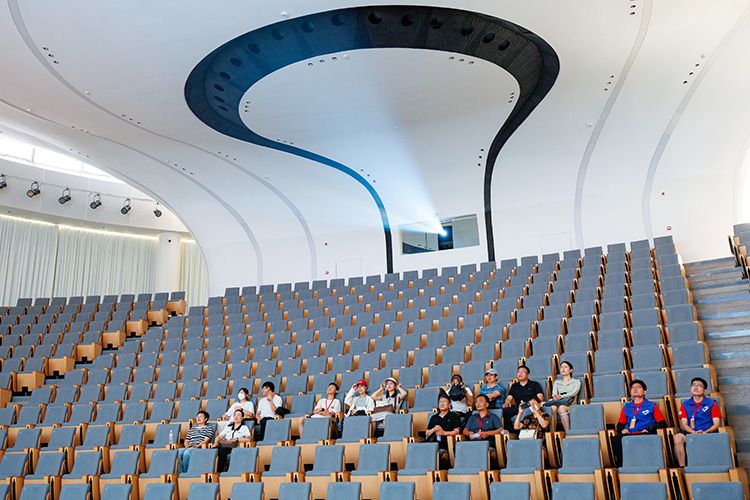 毕业生及家长在工作人员带领下参观北京雁栖湖应用数学研究院。