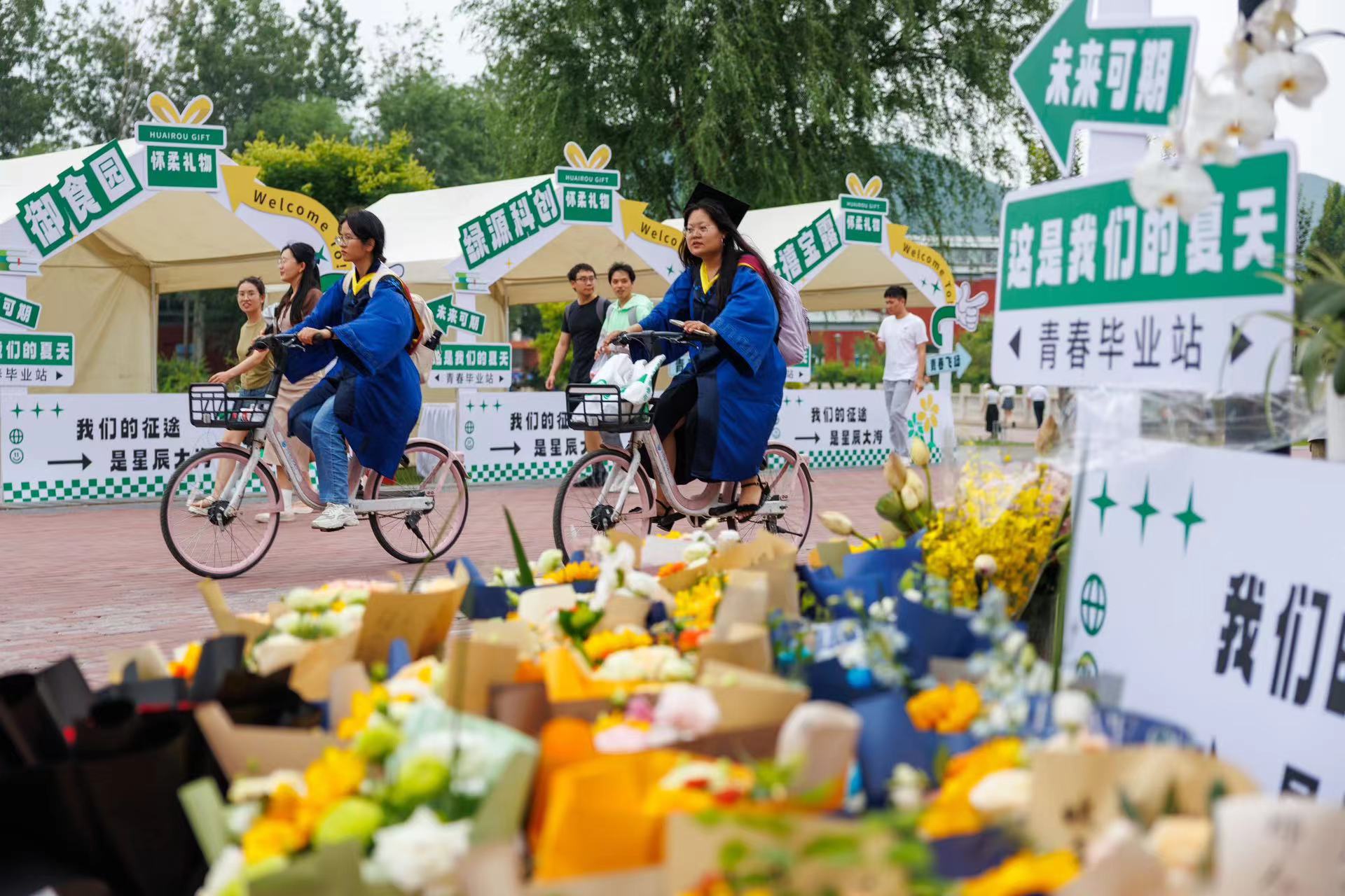 中国科学院大学雁栖湖校区已经启用了十一个年头。但和往年毕业典礼不同的是,今年怀柔区首次和学校合作,支持学生和家长参观怀柔科学城、国际会都、中国影都,还将怀柔本地产品以“怀柔礼物”的形式在校园设立摊位,让学生获得本地的纪念礼物。