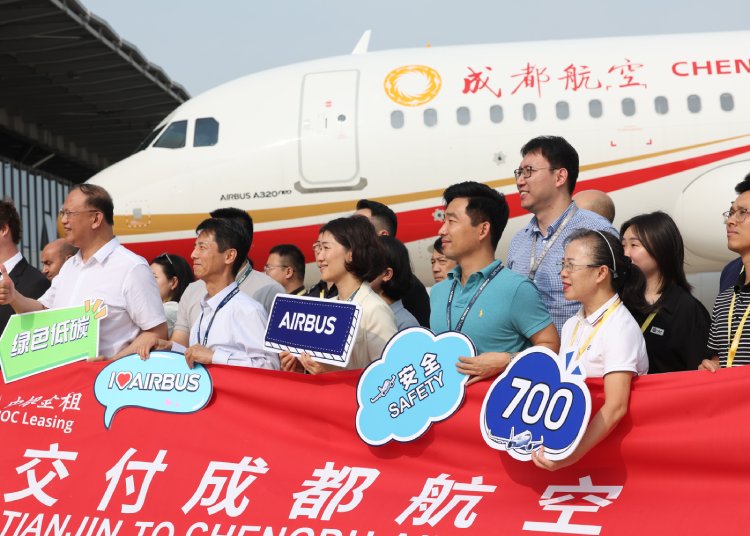 7月8日,空中客车天津总装第700架飞机交付成都航空。该架A320neo飞机配备CFM国际公司Leap-1A发动机,采用舒适的客舱布局,共设180个经济舱座位。