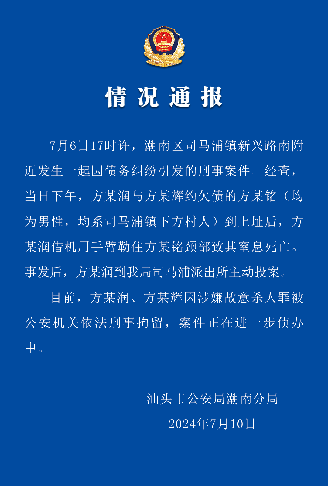 新京报讯 7月10日,潮南公安官微发布警情通报。