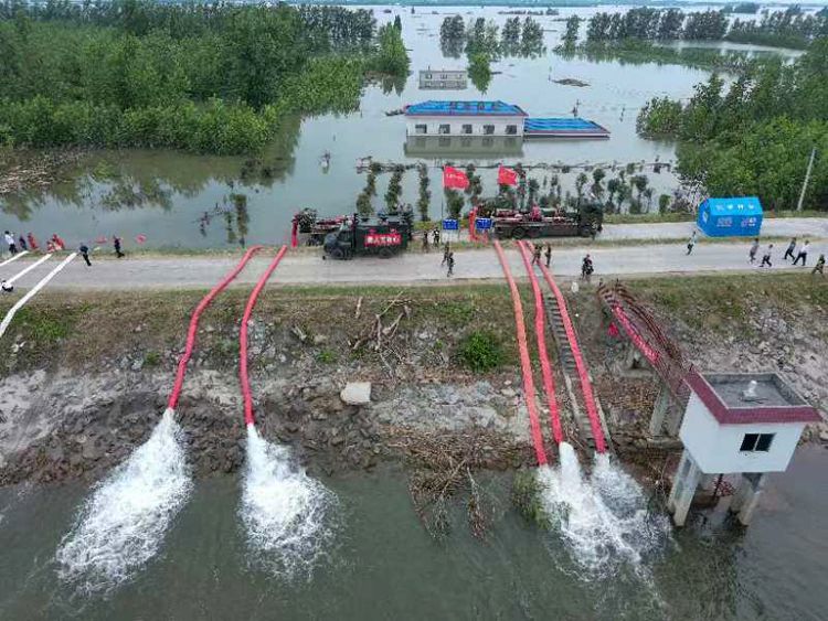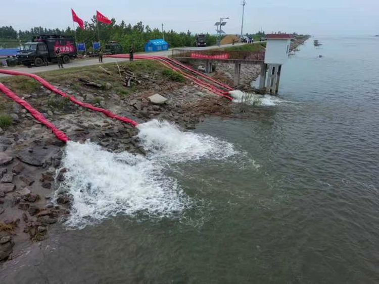 车辆进行抽水作业。7月8日22时31分,湖南岳阳市华容县洞庭湖一线堤防决口完成合龙。7月10日6时,洞庭湖流域全线退出警戒水位。针对团洲垸内积水内涝严重的情况,现场排涝除险作业正在紧张进行。