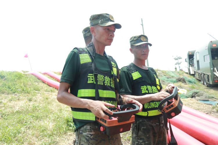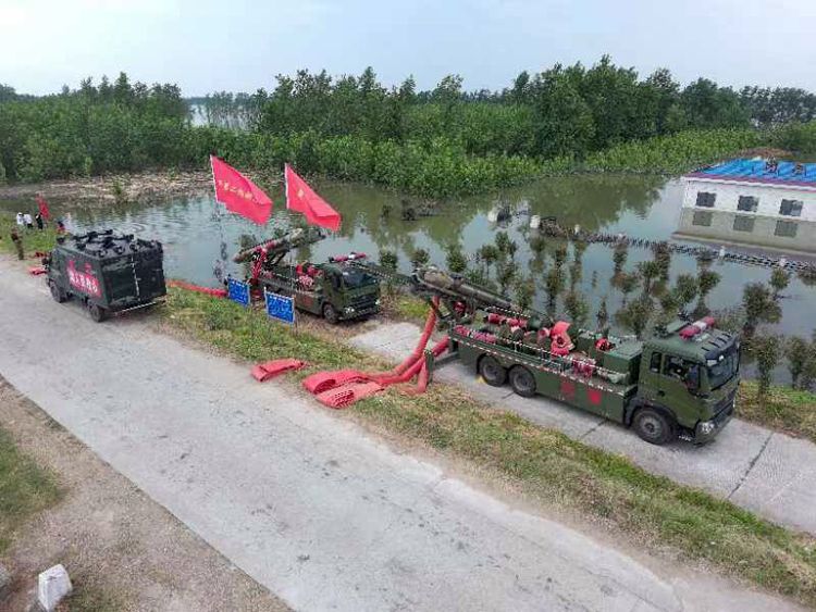 7月10日,武警第二机动总队某支队车辆抵达抽水区域。