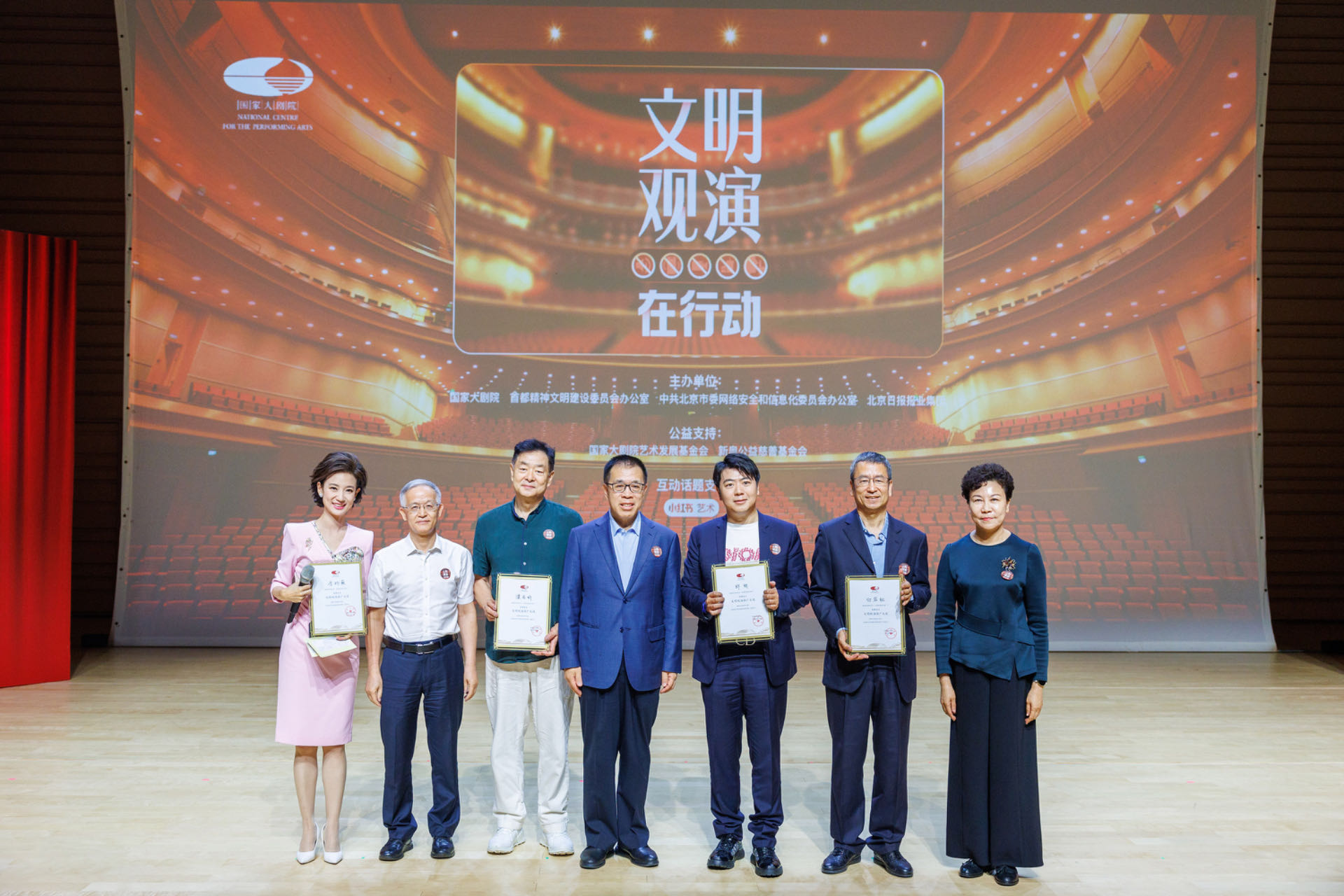 新京报讯(记者刘臻)为进一步提升观众文明素养,营造良好观演环境,由国家大剧院倡导发起,国家大剧院、首都精神文明建设委员会办公室、中共北京市委网络安全和信息化委员会办公室、北京日报报业集团联合主办的“文明观演在行动”于7月10日在北京艺术中心小剧场举行了启动仪式。