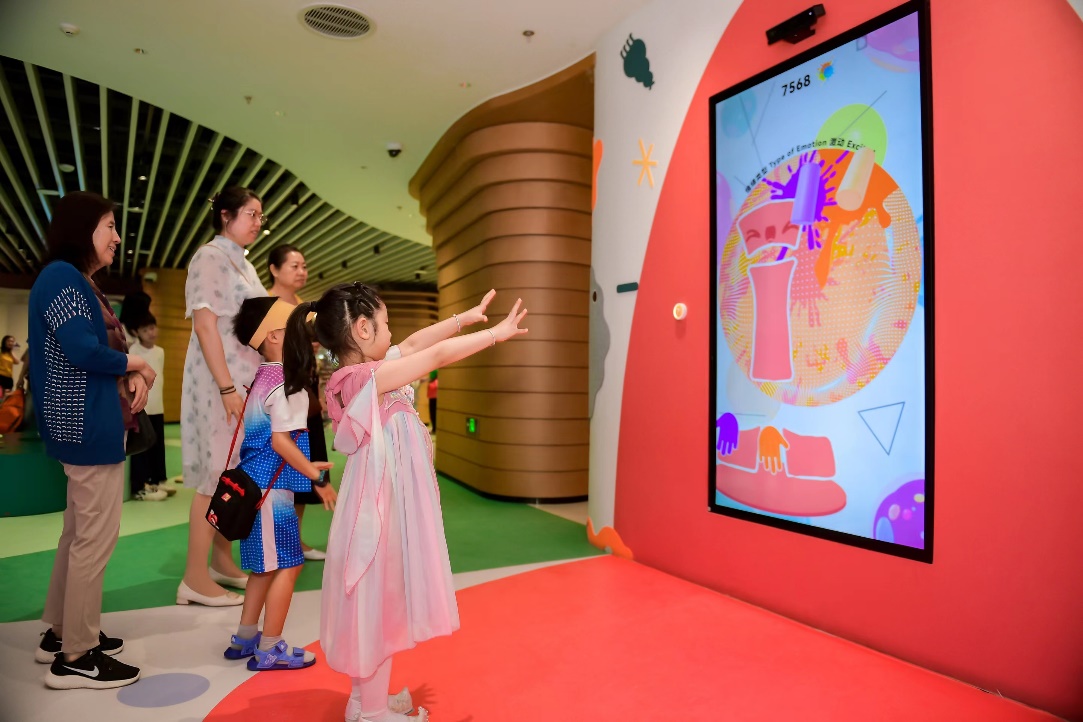 小读者在少年儿童馆体验智慧展陈。北京城市图书馆供图