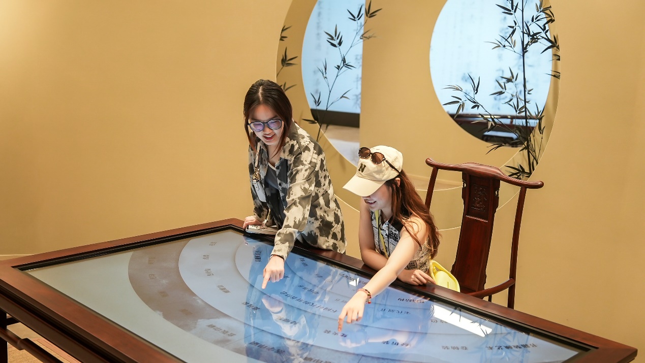 读者体验古籍文献馆的纸上千年展览。北京城市图书馆供图