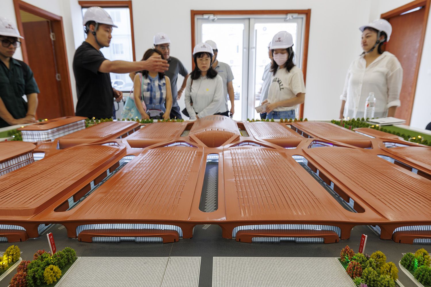 7月12日,记者探访正在建设中的新国展二期,工作人员正在模型前介绍建设相关情况。