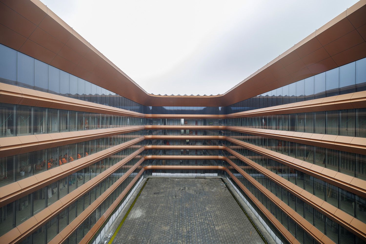 酒店的中庭。目前,北京建工施工区域整体粗装修完成85%,精装修完成50%,机电安装90%,小市政60%。