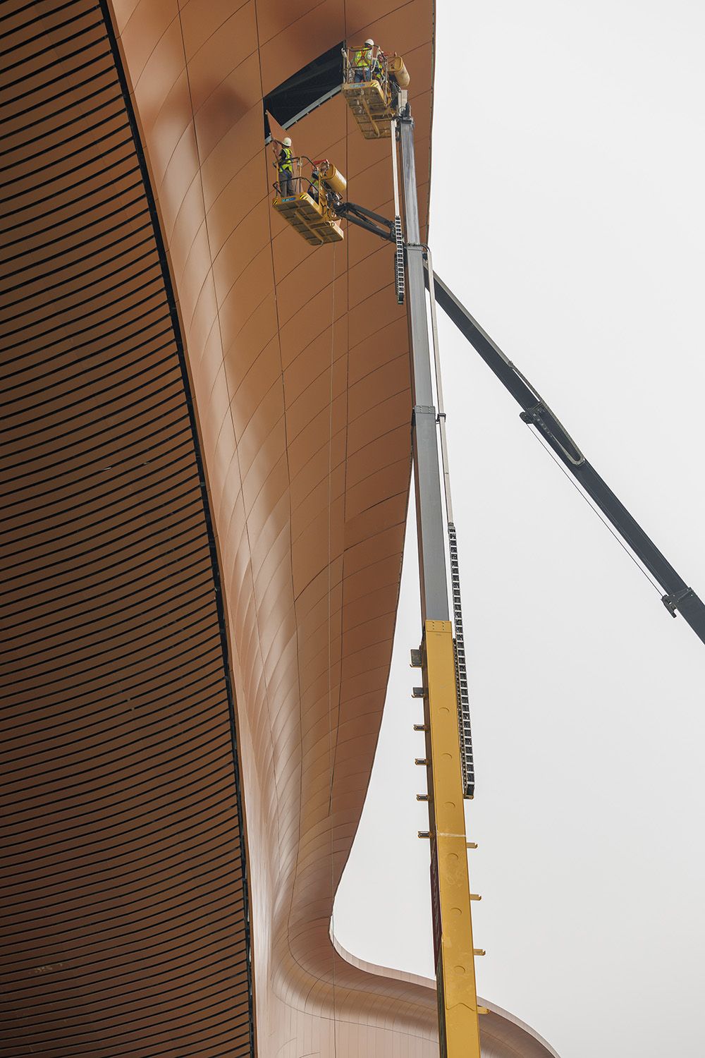 6月底,东登录厅最后一块幕墙金属铝板完成安装,让未来迎接宾客的“门面”完美展现,新国展二期项目“紫金外衣”也正式亮相。