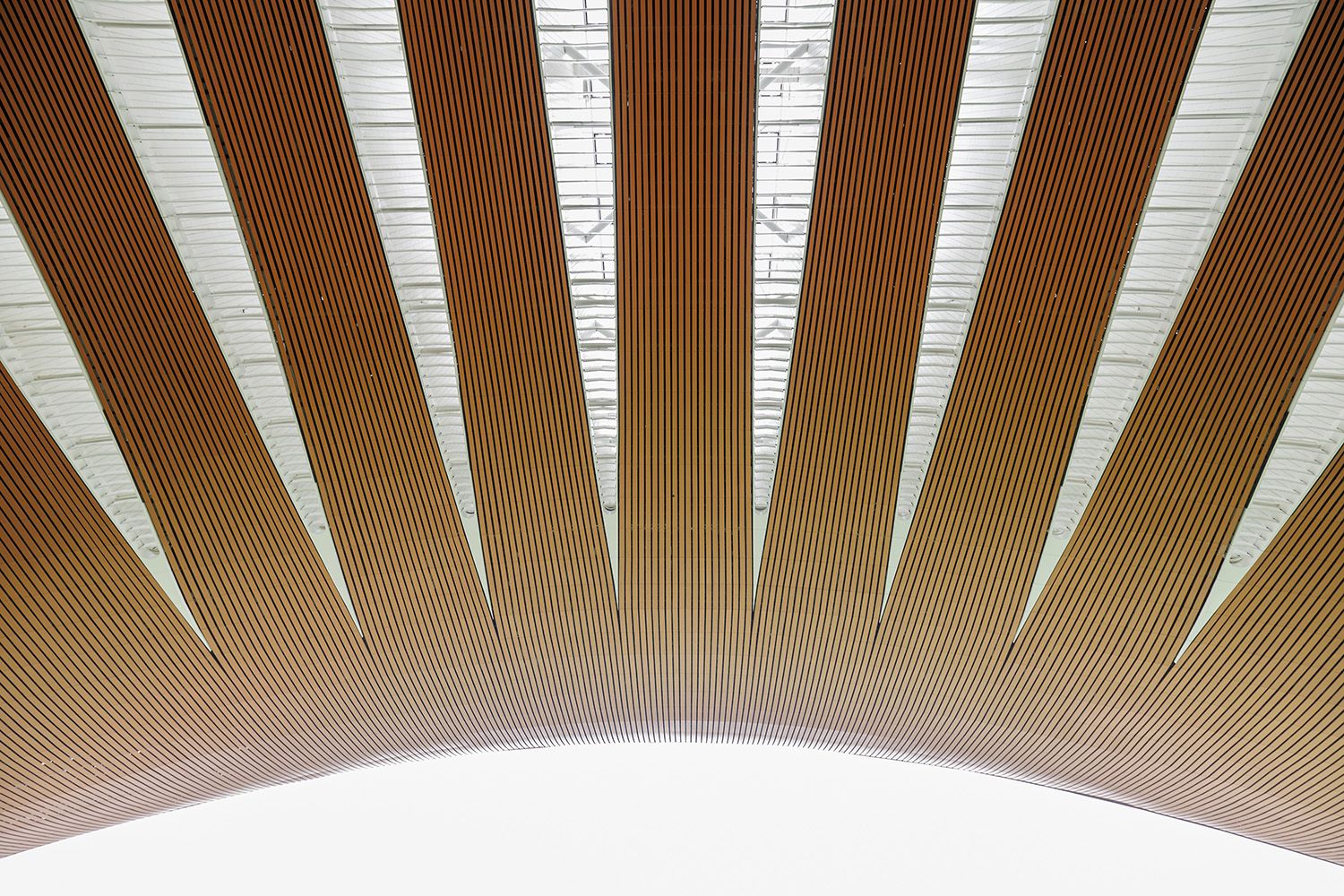东登录厅大檐高38米,最大跨度142米,檐口由弧形单层索网玻璃幕墙组成。图为大檐局部。