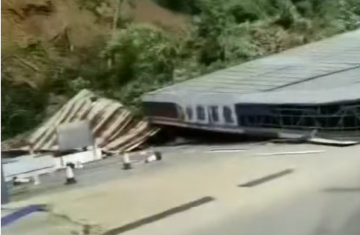 山体滑坡致云南河口一加油站倒塌 2人已无生命体征