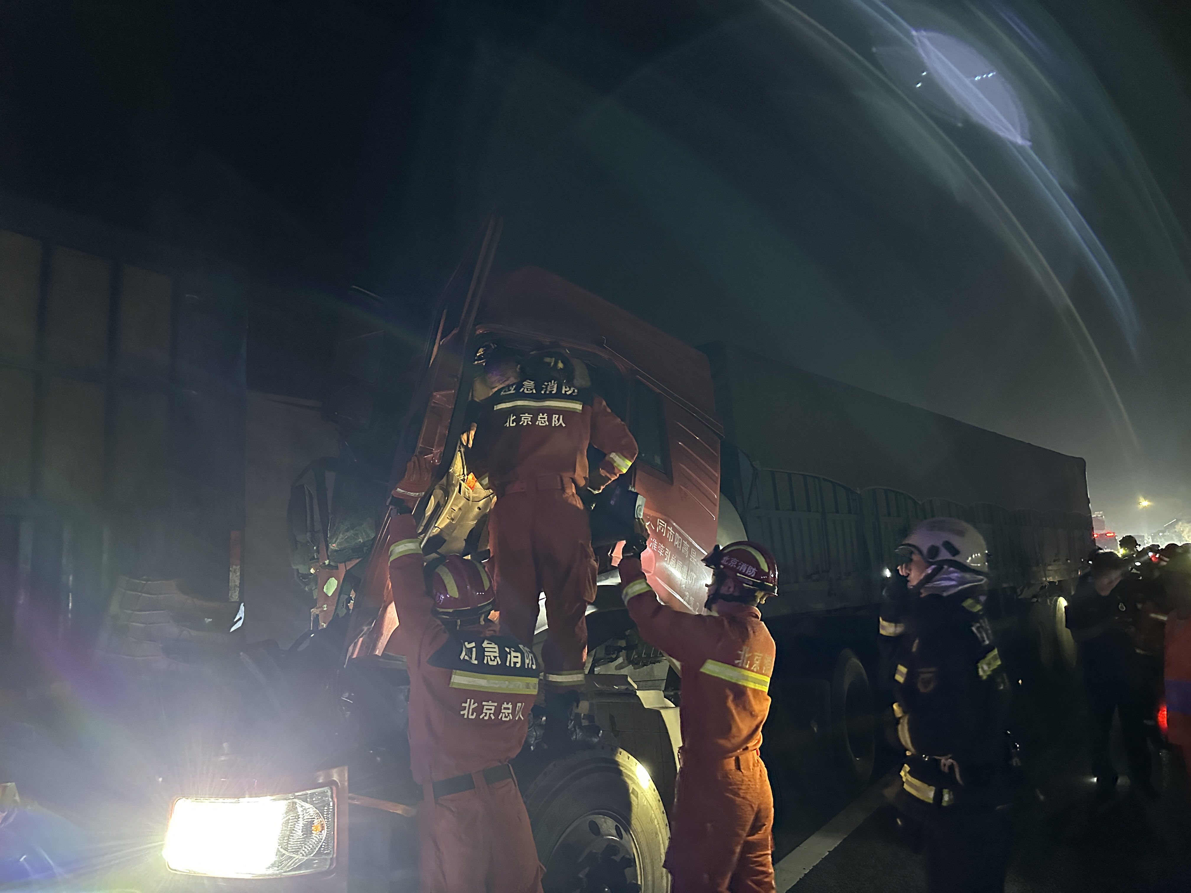 消防救援人员正在营救被困司机。 图源:昌平区消防救援支队