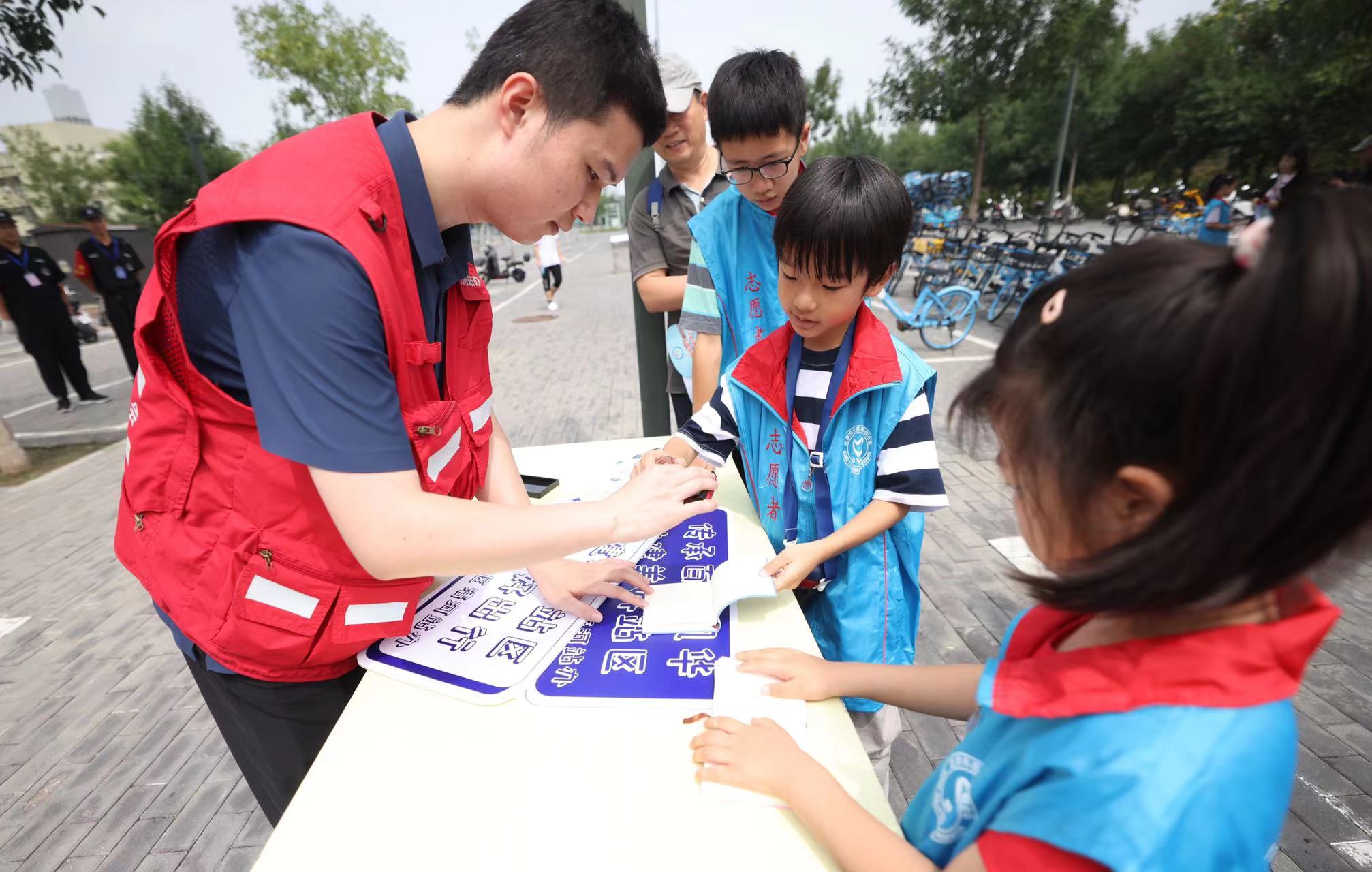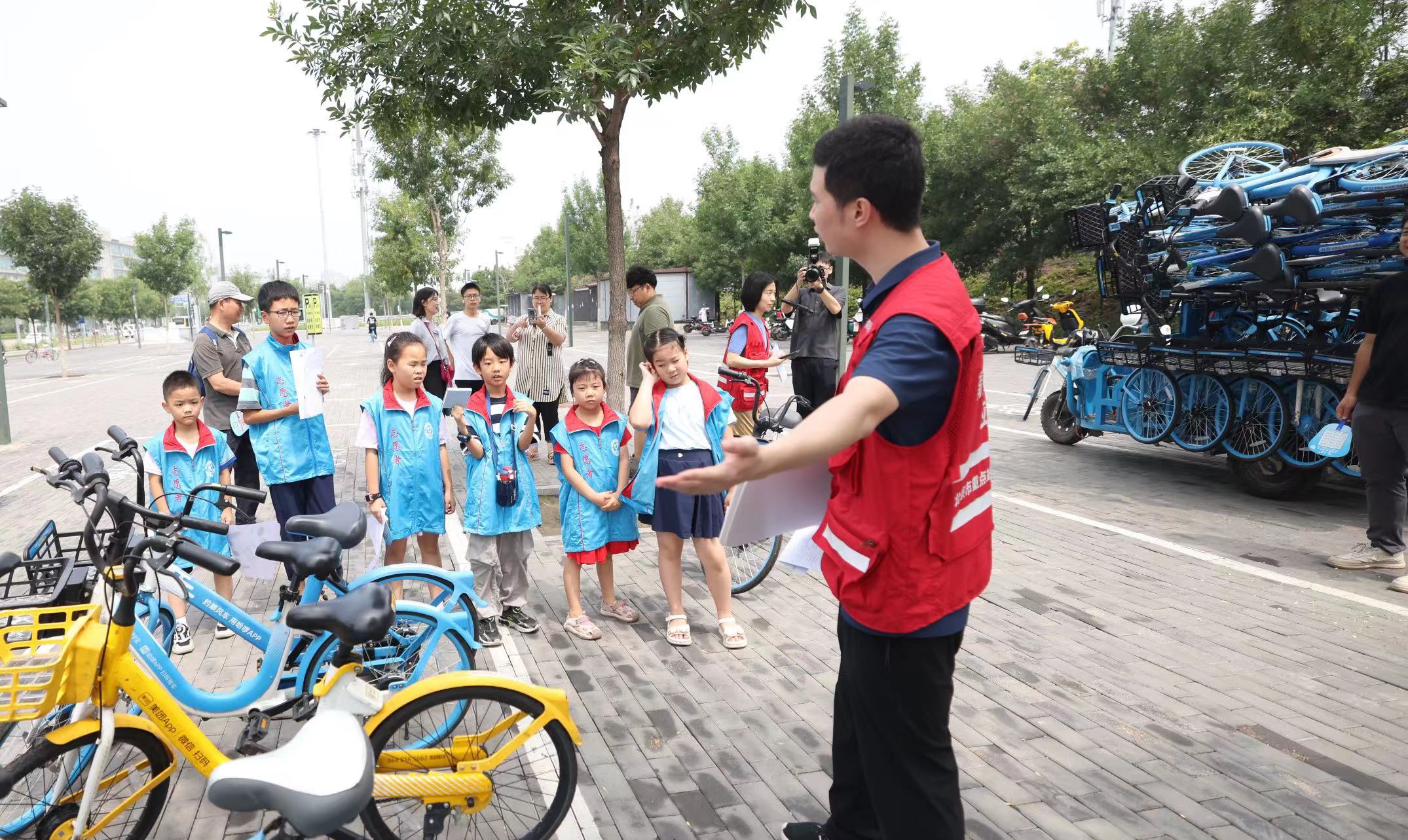发放文明传单、码放共享单车,孩子们在清河站体验志愿服务