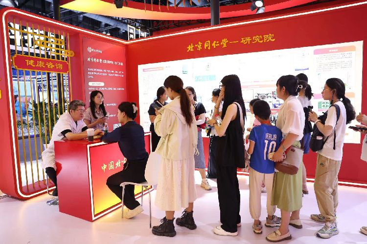 7月16日,同仁堂展区,观众排队进行健康咨询。