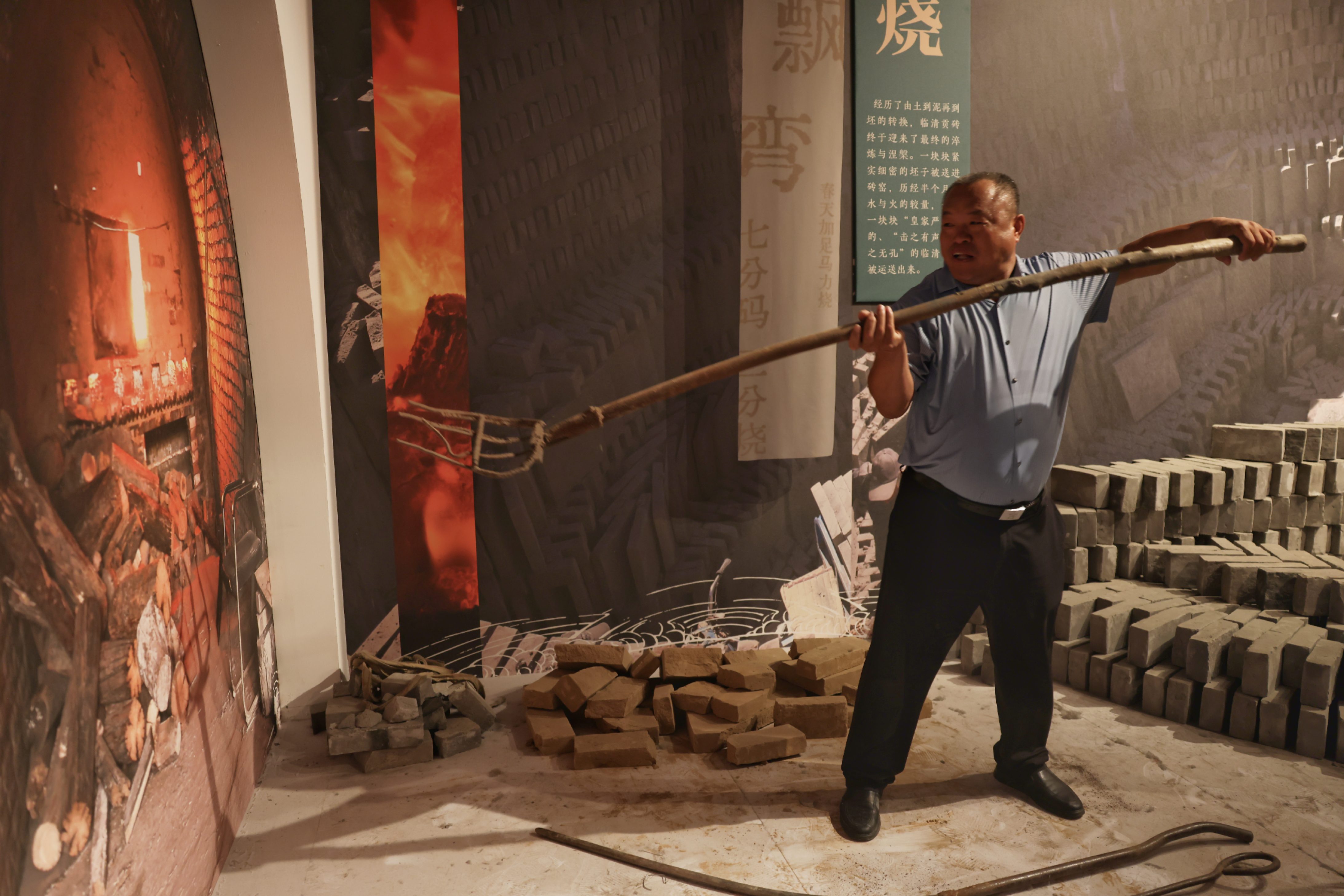 国家级非遗临清贡砖烧制技艺传承人赵庆安现场讲解如何制作贡砖。新京报记者 浦峰 摄