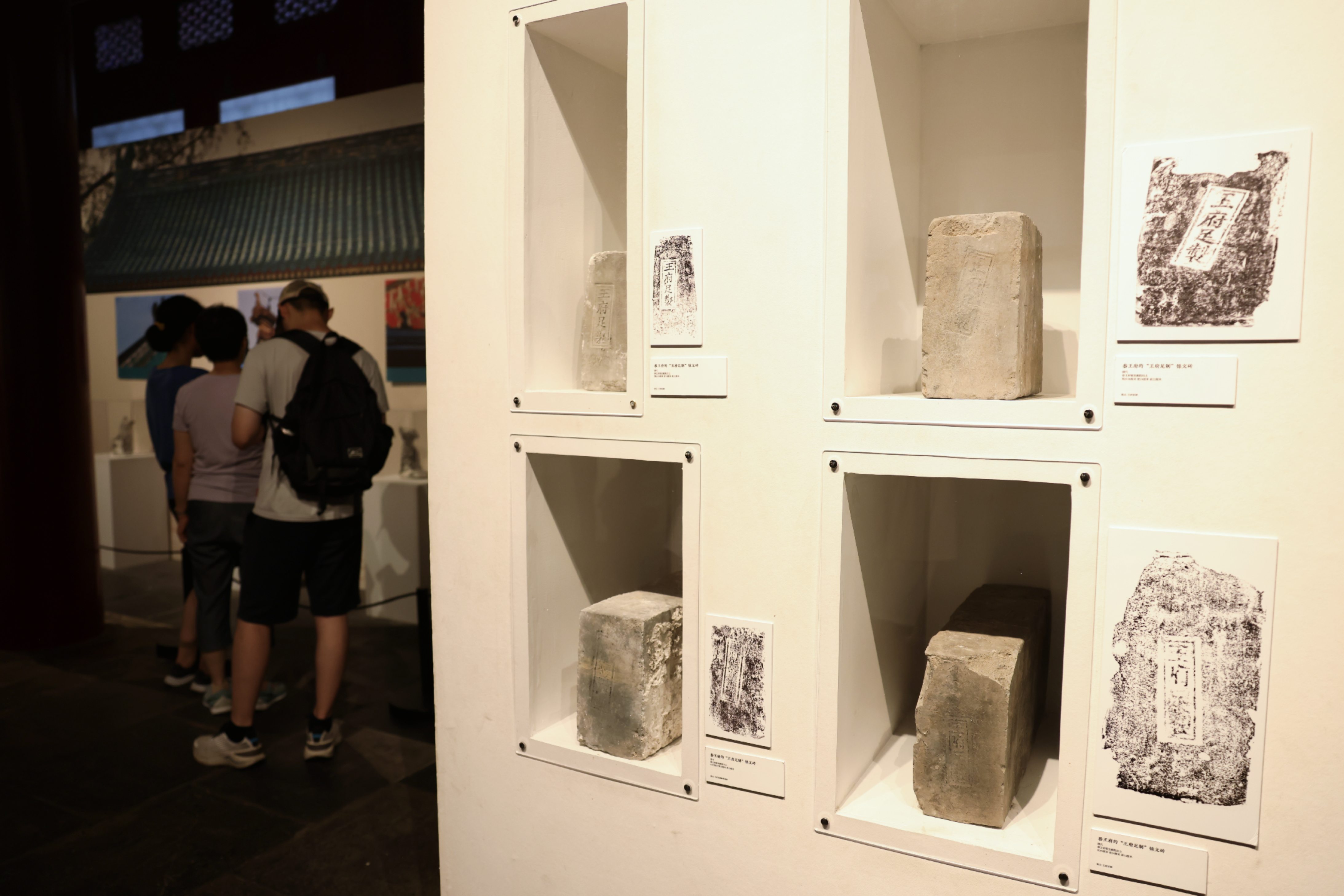 恭王府博物馆藏府邸出土的10块带铭文临清贡砖、部分府邸建筑脊兽全形拓等藏品一并展出。除此之外,在恭王府银安殿西配殿朝南的墙上和府邸东府墙上都还保留着一些带有铭文的临清贡砖,观众们可前去“寻宝”。