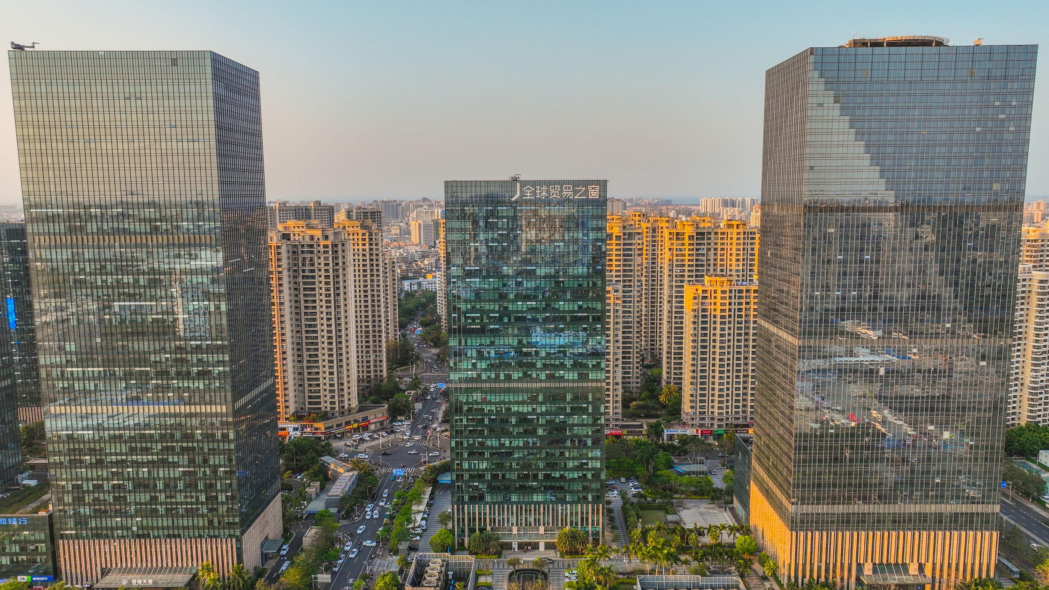 ▲2023年2月23日,海南海口,航拍高楼林立的海口国兴大道CBD写字楼。图/IC photo
