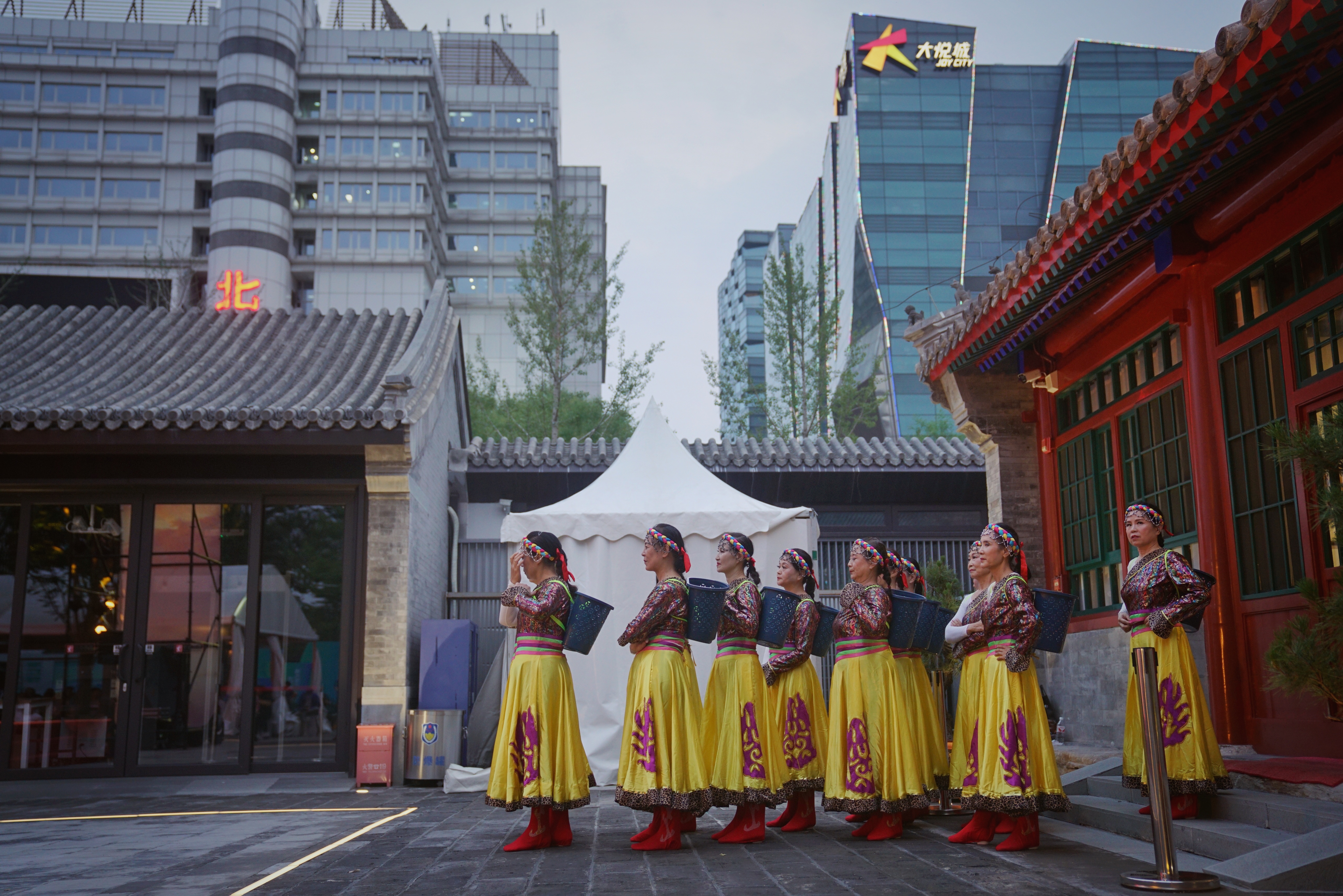 7月22日,蒙藏学校旧址,西城区文化馆文化广场双拥文艺晚会,舞蹈演员候场。 新京报记者 薛珺 摄