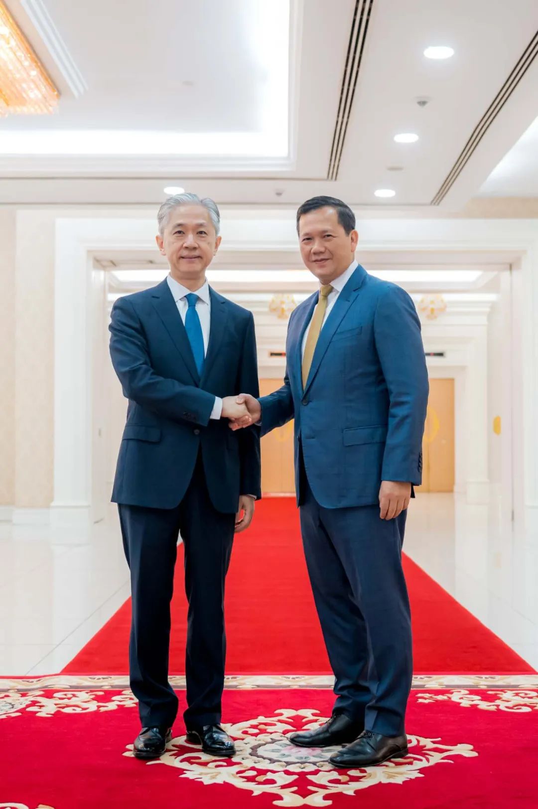 新京报讯 据中国驻柬埔寨大使馆官微消息,2024年7月22日,汪文斌大使到任拜会柬埔寨首相洪玛奈。