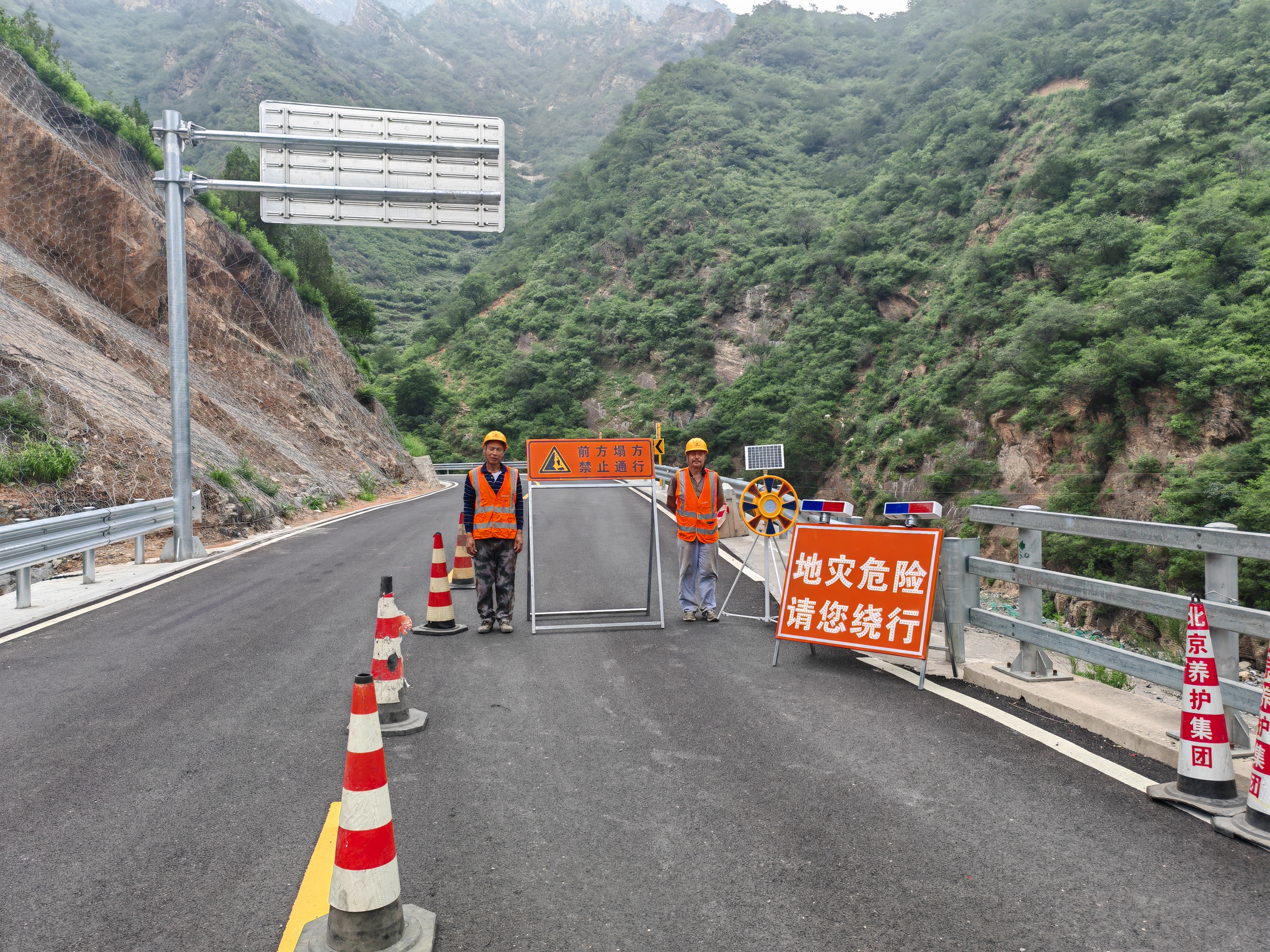 7月24日,房山公路分局派专人在山区公路贾金路上值守。房山公路分局供图
