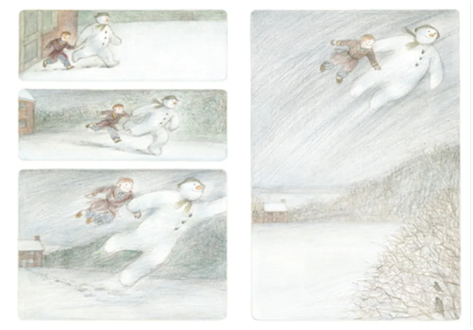 很多人应该都堆过雪人吧!有些孩子喜欢将胡萝卜作为雪人的鼻子,用树枝作为他们的手臂,再给他戴上帽子、戴个围巾……在孩子的世界中,雪人也是一个独特的“生命”。仿佛我们瞬间进入了英国作家雷蒙德·布里格斯的无字图画书《雪人》的故事中,并跟随他一起开始了无尽的探险。