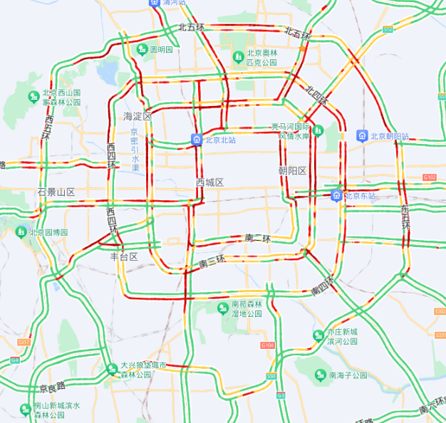 降雨导致路面湿滑,能见度不佳,对交通出行有一定影响,预计晚高峰城市路网交通压力大。城区主要环路部分路段,建国门外大街、通惠河北路、学院路、万泉河路、莲石东路、阜石路等联络线出城方向,京藏、京承、京开、京港澳、京通快速、首都机场高速等高速公路出京方向,以及部分下凹式立交桥、低洼路段等易积水点位可能出现行驶缓慢情况。