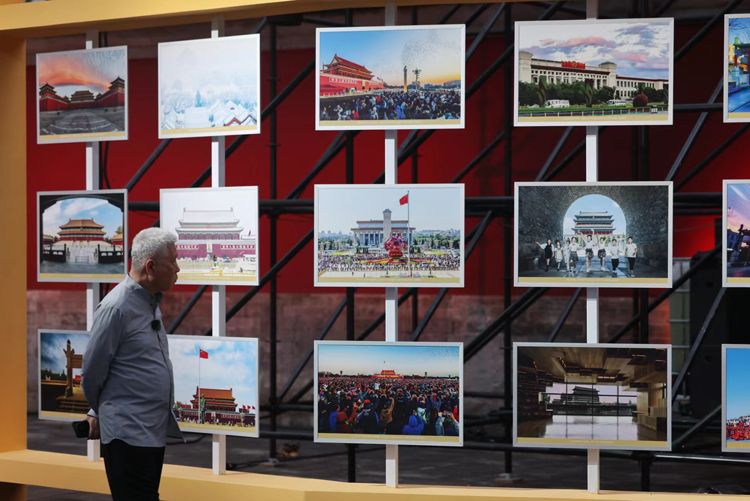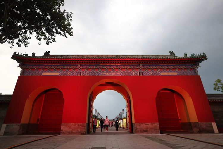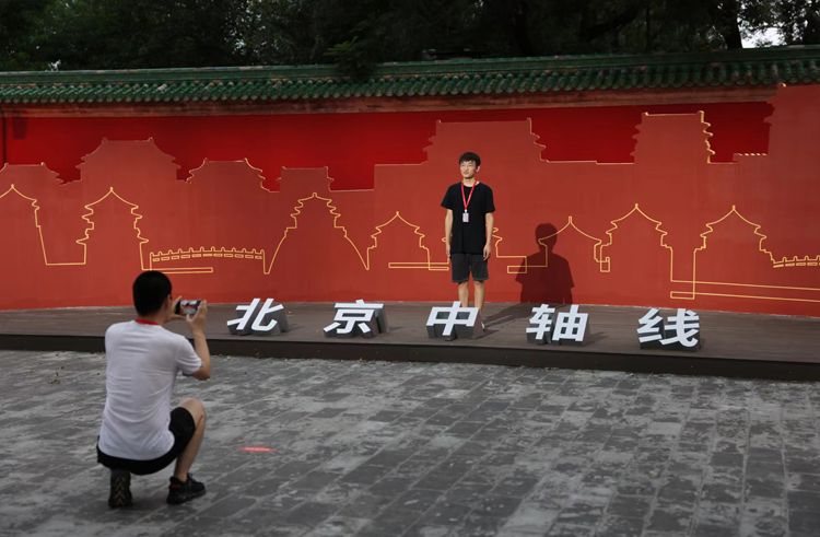 7月31日,先农坛,观众在中轴线打卡点拍照。
