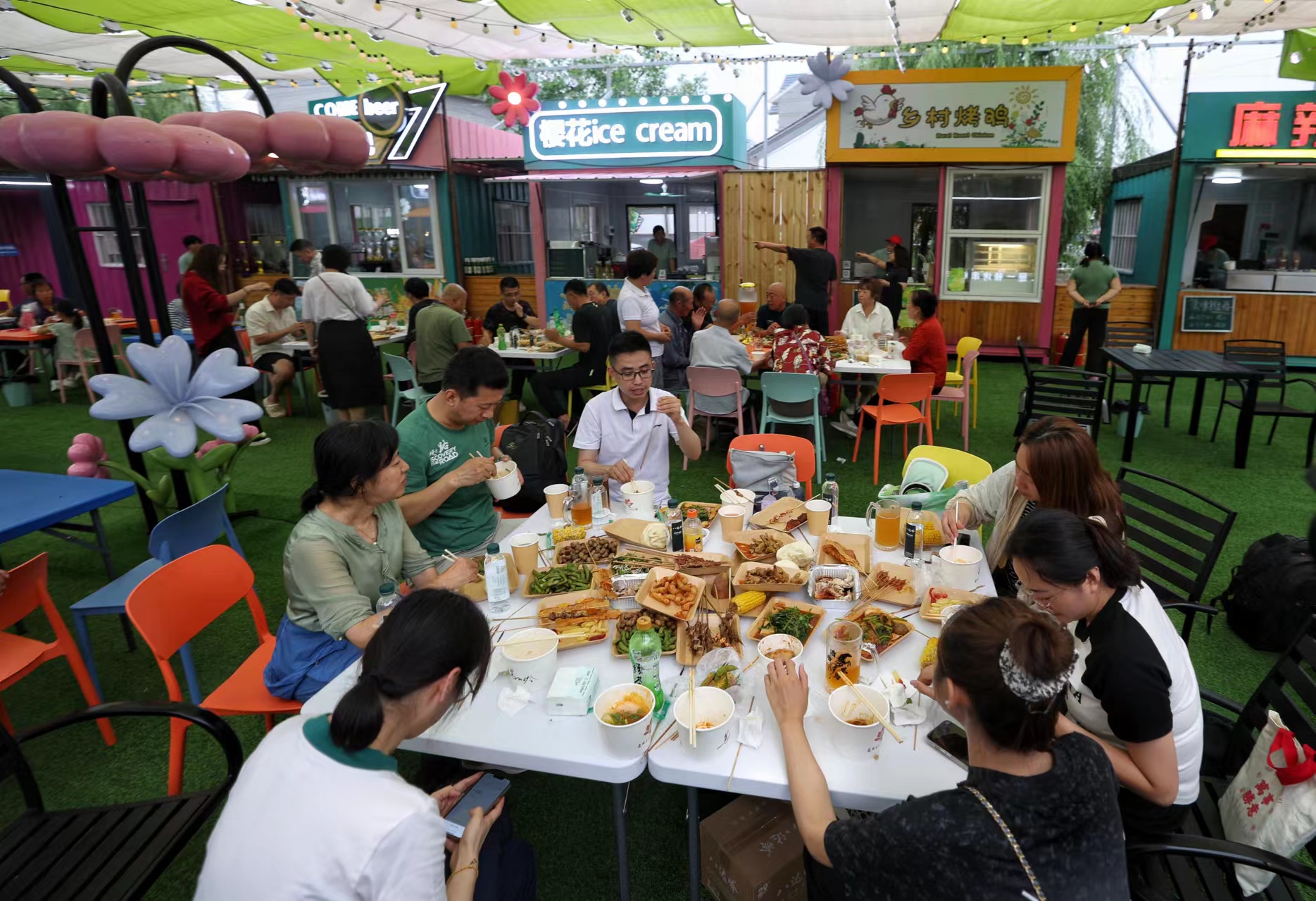 活动现场展示各种美食。近日,四海镇荣获中国气象服务协会评选的十大“乡村避暑旅游”好去处之一。