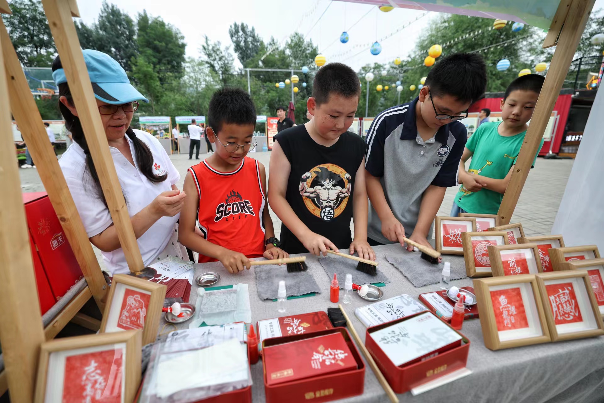 小朋友现场体验拓印。四季花海主景区在此次旅游季中进行提质升级,种植面积扩大至千亩,新增茶菊、马鞭草等多种花卉品种,形成了色彩斑斓的千亩花海景观。
