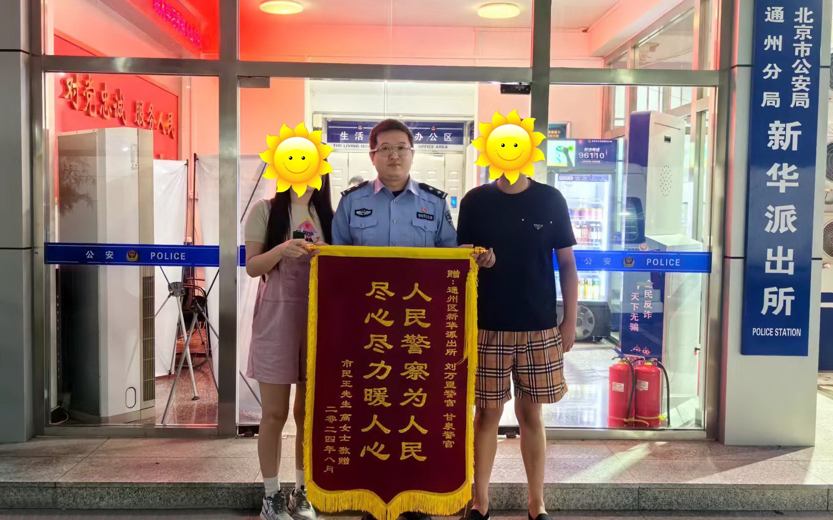 家属给民警送来锦旗表示感谢。图源:通州公安分局
