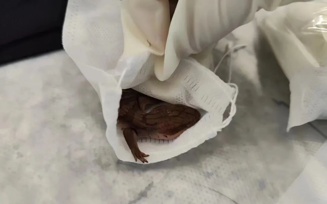 12只活蜥蜴绑藏腰部进境,被深圳皇岗海关查获