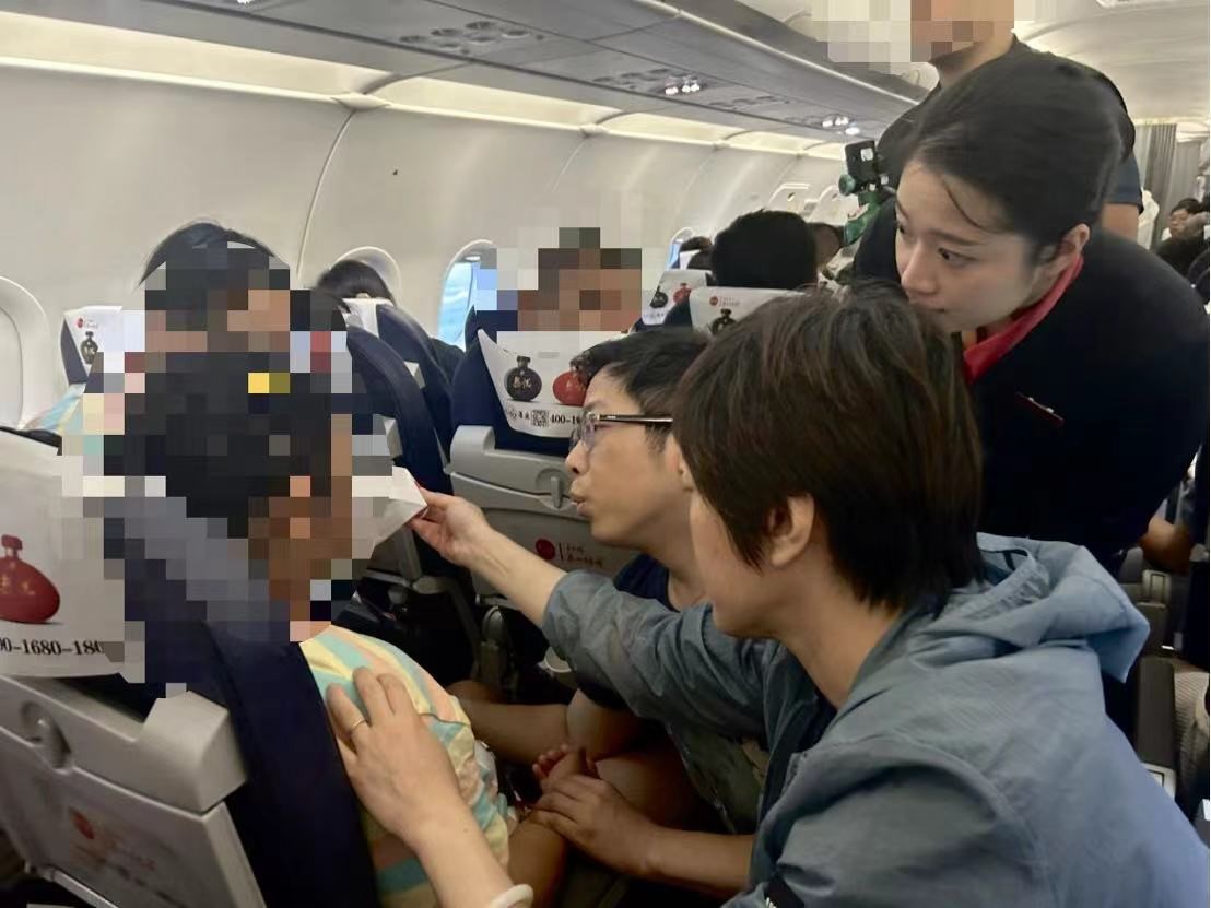 新京报讯(记者左琳 通讯员季学丽 姜航)“紧急播报!紧急播报!乘客中是否有医护人员,飞机上有位儿童不适,急需救治!”7月28日下午,一架由贵州飞往南京的飞机上,乘务员广播紧急寻求帮助。刚好江苏省人民医院急诊与危重症医学科的几名医护人员,在参加完学术会议返程途中,在这架飞机上,他们立即赶到该名旅客身边救助。