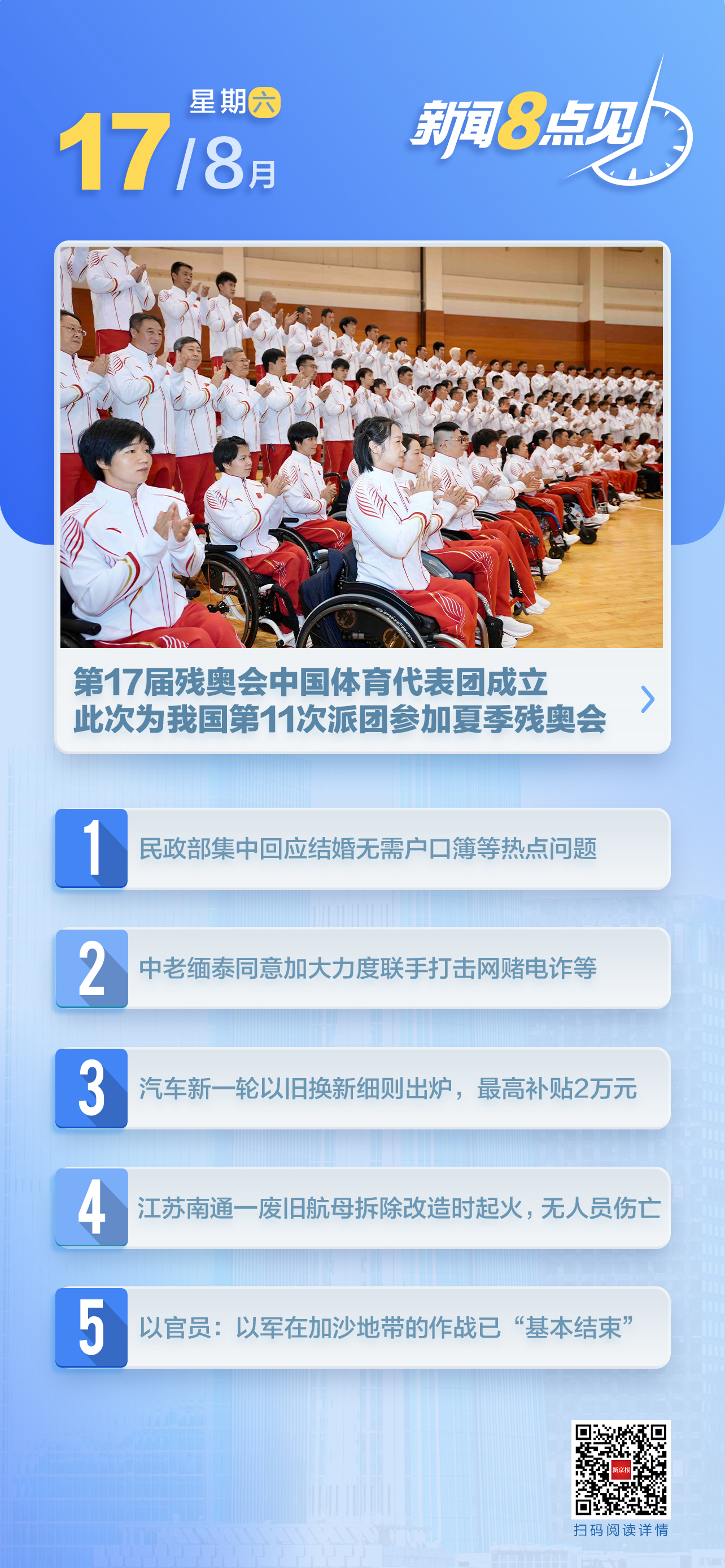 第17届残奥会将于2024年8月28日至9月8日在法国巴黎举行。8月16日,中国体育代表团在北京成立。代表团总人数516人,其中运动员284人(包括男运动员126人、女运动员158人),教练员、工作人员、竞赛辅助人员232人。运动员分别来自全国25个省、自治区和直辖市,平均年龄25.8岁,年龄最大的是48岁的乒乓球运动员熊桂艳,年龄最小的是15岁的游泳运动员朱慧,有12名少数民族运动员。巴黎残奥会共设22个大项、549个小项,届时将有来自约160个国家和地区的4400名运动员参赛。此次为我国第11次派团参加夏季残奥会。(央视新闻)阅读全文>>>