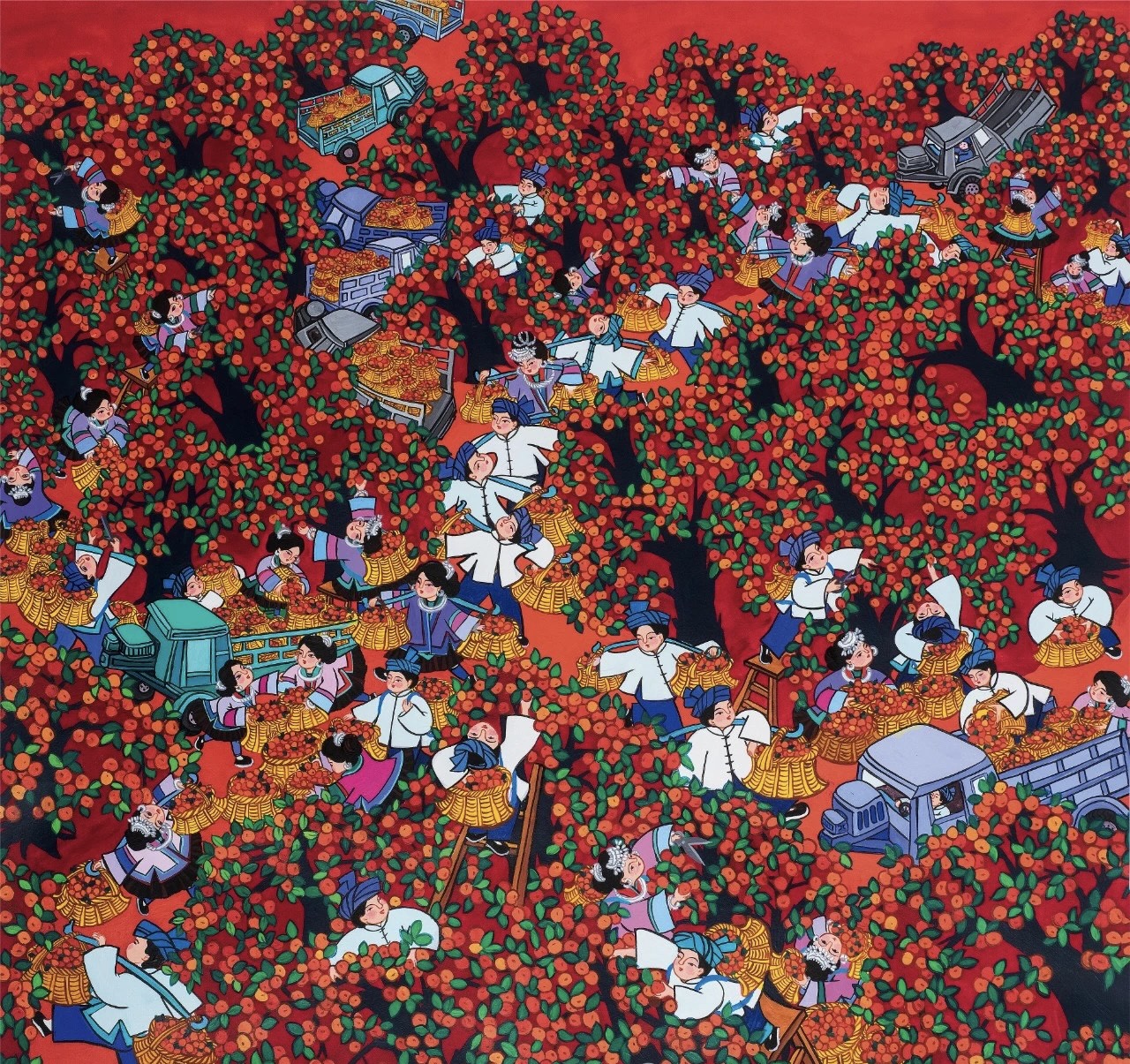 近年来,随着巩固拓展脱贫攻坚成果衔接推进乡村振兴的不断深化,广西农民画得到蓬勃发展。各族人民积极感悟时代之变,“白天提锄头、晚上拿画笔”,以民族风情、生产生活、乡村振兴为题材,画山、画水、画劳动、画丰收、画乡情,用画笔记录美好、记录感动。