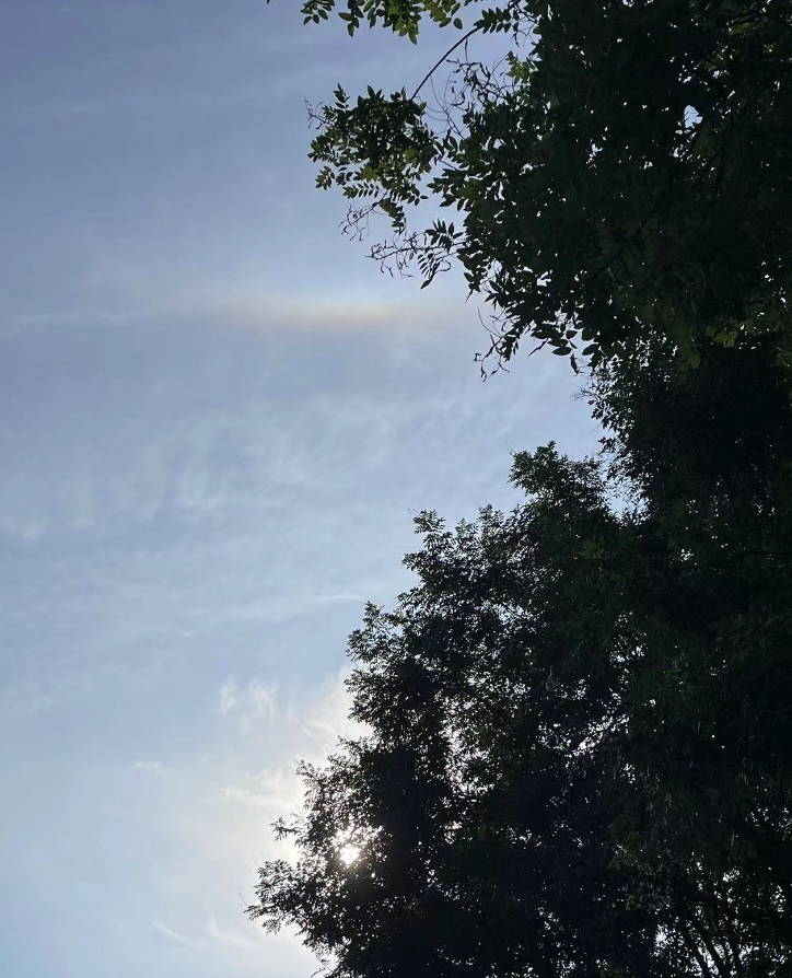 环天顶弧被称为“倒挂彩虹”,是阳光水平通过冰晶后折射而形成的,常出现在日出日落前后三个小时内。