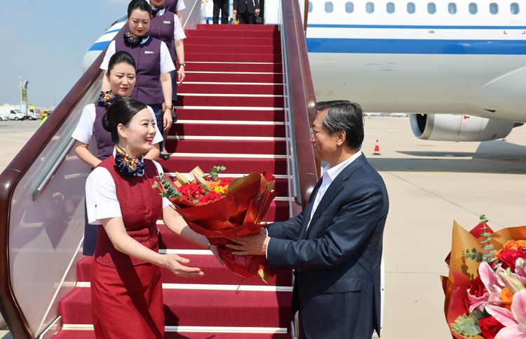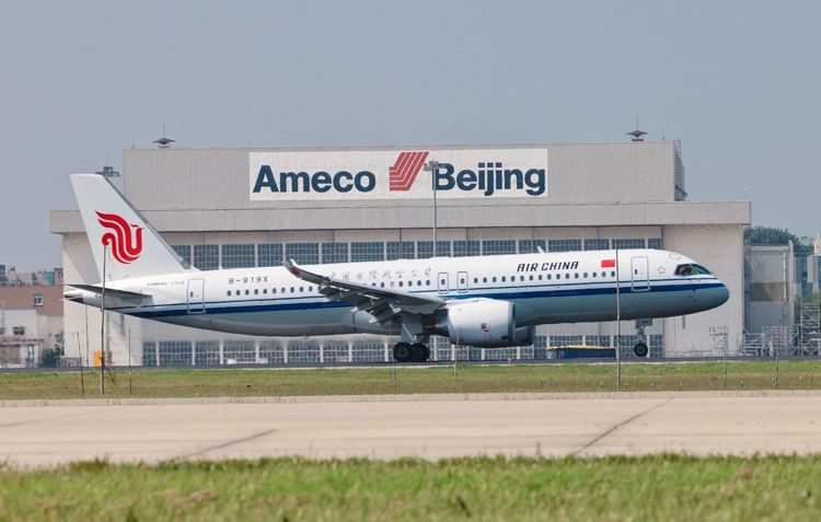 接机代表向机组人员送上鲜花。国航在C919 的保障方面做了充分准备。在空中保障方面,5月21 日国航飞行总队组建 C919飞行大队,7月29日首批10名C919飞行员完成转机型训练并获得执照;首架机运行储备的84名航空安全员和126名乘务员分别于7月5日、7月18日完成培训。在地面保障方面,截至5月,548名飞行签派员完成训练具备运行控制资格;截至7月,近1200名地面服务人员完成新机型培训,能够在行李装卸、特种车操作、配载等岗位为C919提供保障。机务维修方面,6月14日,民航华北局对北京飞机维修工程有限公司(简称Ameco)的C919 维修保障能力审核,Ameco华北航线中心获批维修许可和定检维修能力,西南航线中心等也建立起航线维修能力。