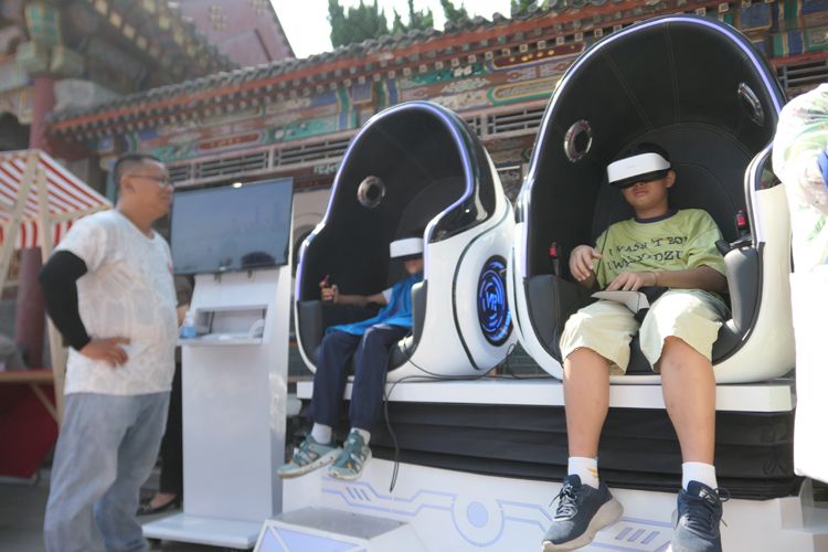 启动仪式上,小朋友体验VR设备。接下来一个月,西城区将举办一系列慈善活动,宣传慈善理念,动员更多社会力量参与慈善事业。