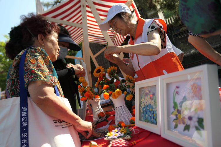 启动仪式上,工作人员向市民介绍手工花的制作技巧。