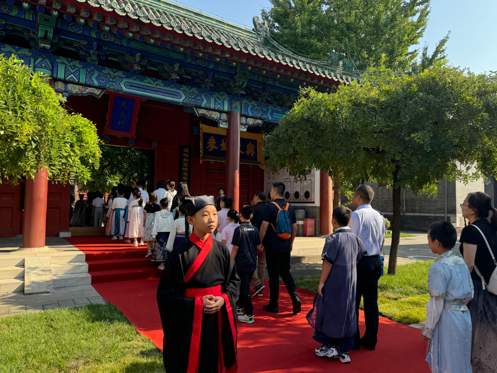 四年级9班的学生家长王女士告诉记者,以前并不知道还有“入泮礼”仪式。“收到老师的通知后,就带着孩子在家练习,还特意和孩子一起准备了汉服。孩子也特别积极,我们一起学习了传统礼仪文化,包括汉服知识。”王女士说道,“今天的仪式很庄重,感受到传统文化的传承。府学小学本部校区本身也有着浓厚的文化氛围,很开心孩子将要在这里学习。”