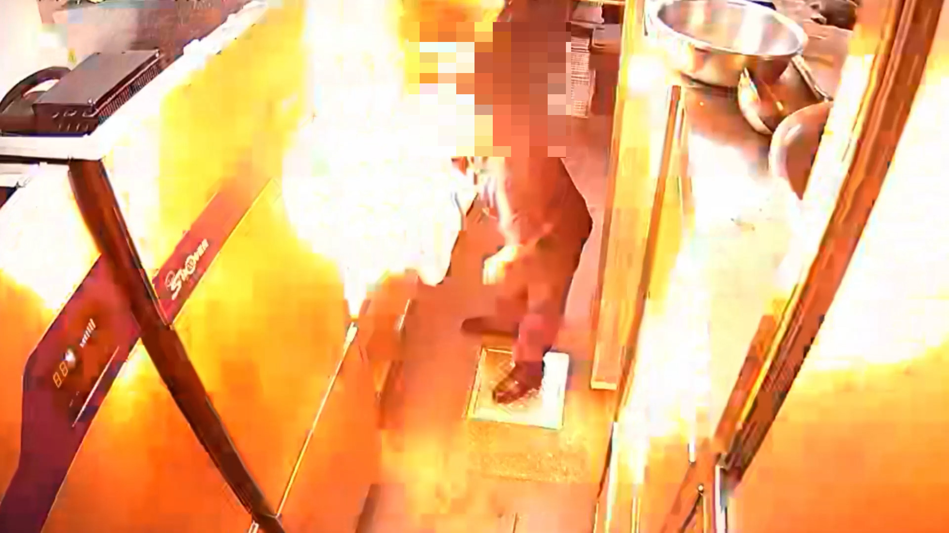 餐馆后厨起火。视频监控截图