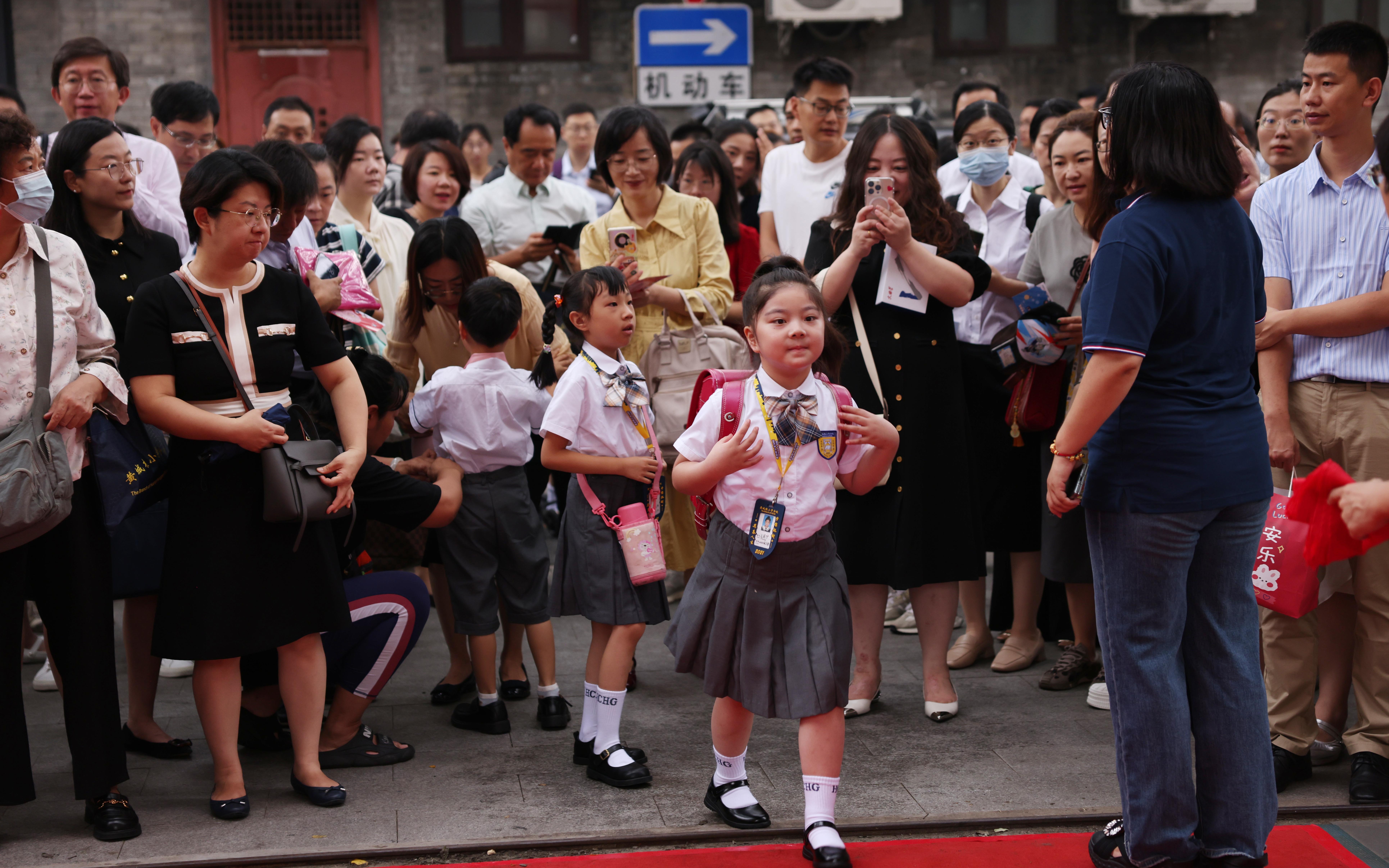8月31日,黄城根小学附属实验分校新学期迎来了150名一年级新同学。 新京报记者李木易 摄