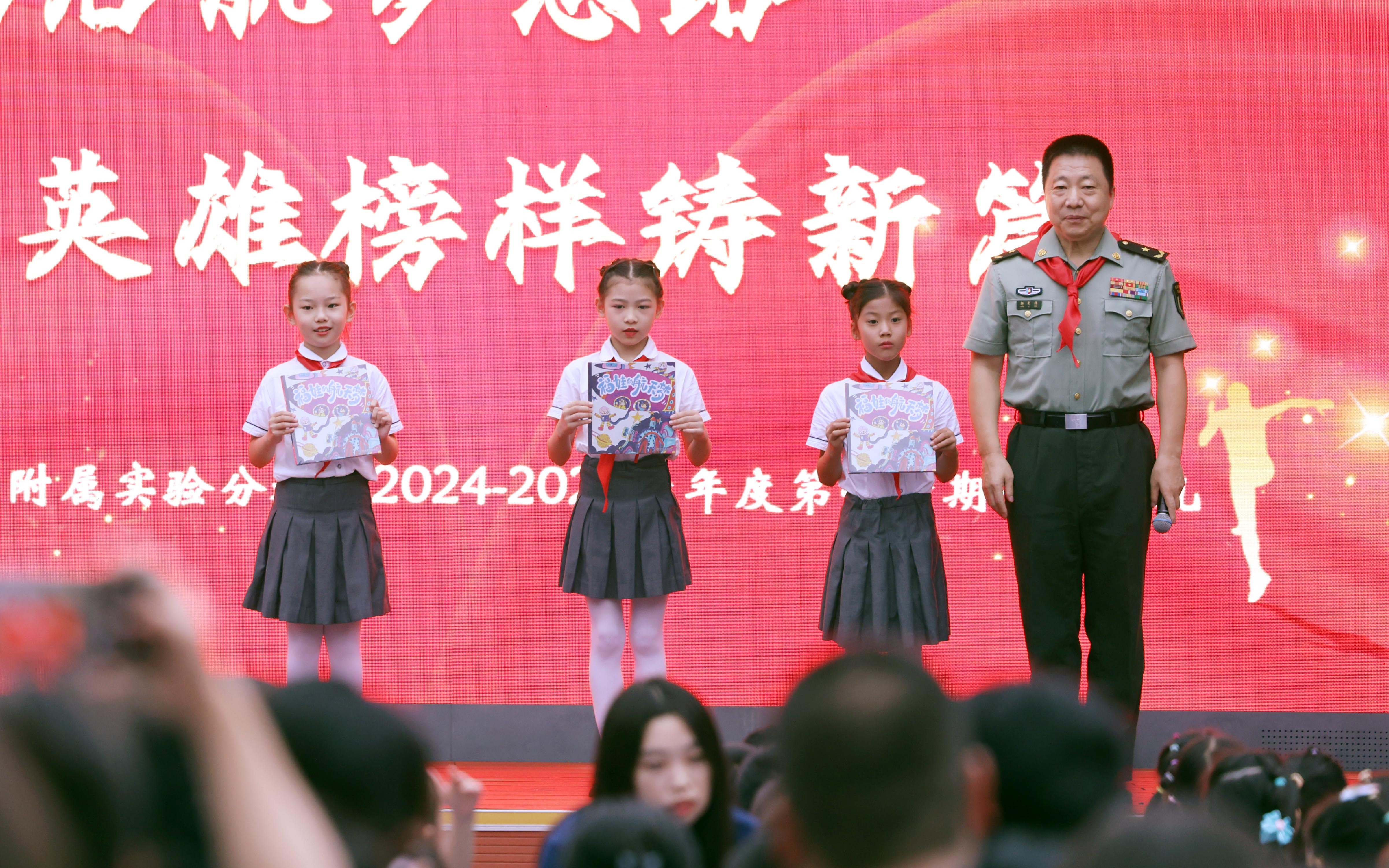 紧接着,二年级同学们朗读了《自豪中国人 伟大航天梦》,他们通过激昂的文字,表达对航天英雄的崇敬之情和对祖国航天事业的憧憬。中国载人航天工程副总设计师、航天英雄杨利伟少将的出现让孩子们激动不已,纷纷挥舞起手中的小红旗。