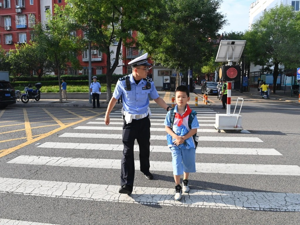 新京报讯(记者吴梦真)9月1日是北京市中小幼开学第一天,北京警方部署充足的护学岗警力,动员校园内外群防群治力量2万余人共同参与校园安保工作。
