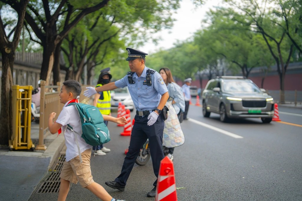 开学首日,民警开启护学模式。 图源:北京市公安局