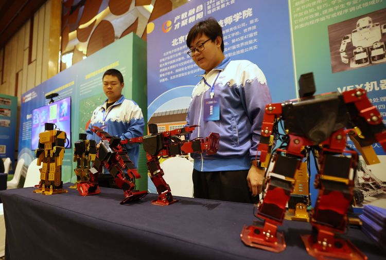 大会的平行展演区,北京电子信息技师学院展示人形机器人。与这些新职业、新技术的零距离接触,让参与者感受到技术技能在智能制造、商务服务乃至生活服务等各行各业的核心驱动力,激发了社会各界对技能类职业的浓厚兴趣。