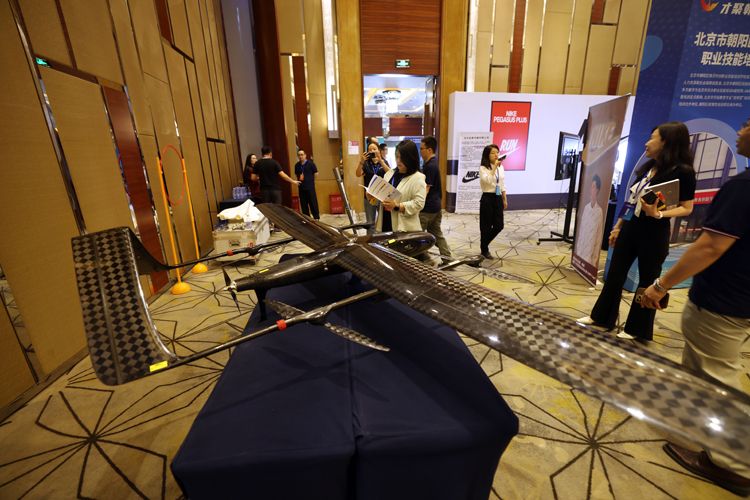现场展示的无人机。朝阳区举行了“京津冀+”青年职业技能实训联盟的成立仪式,并同步启动了京津冀教学能手技能比武活动。