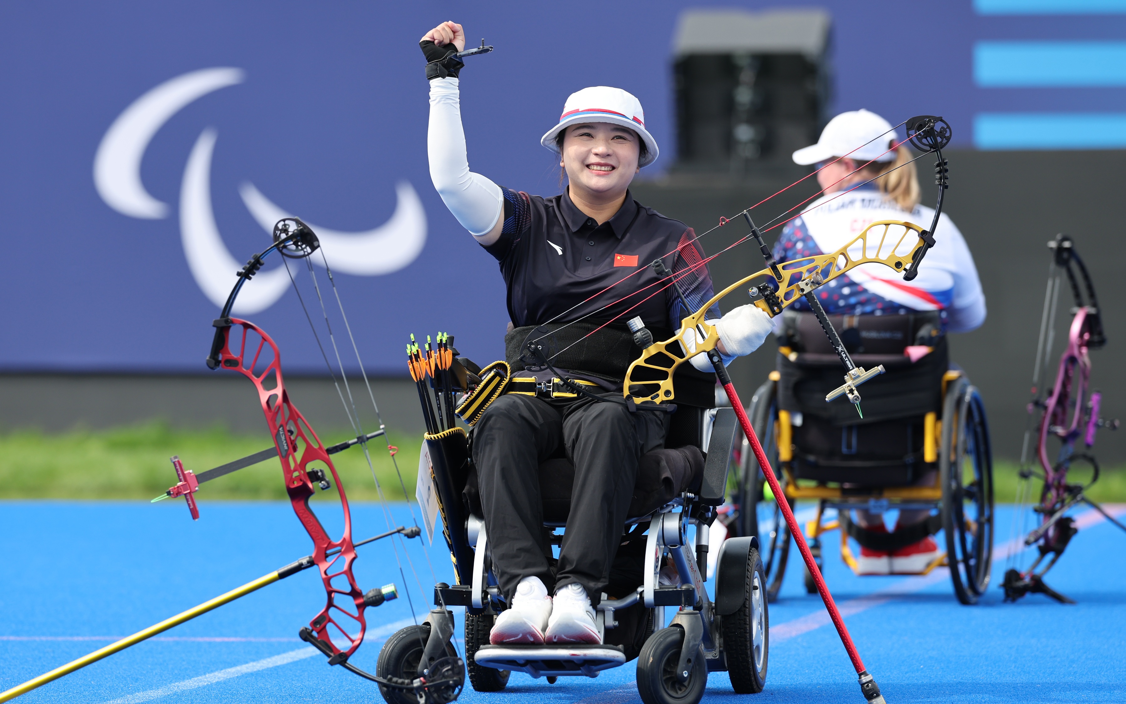 8月31日,陈敏仪获得射箭女子W1级金牌。 图/新华社